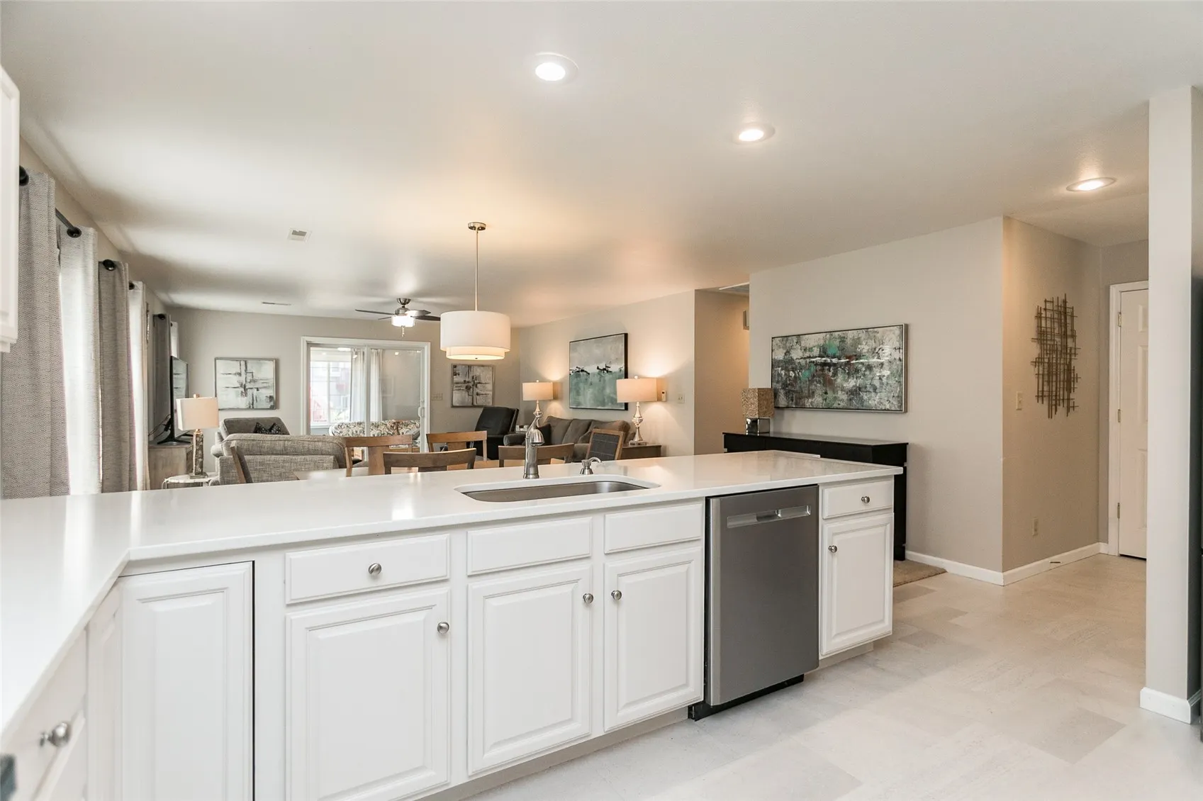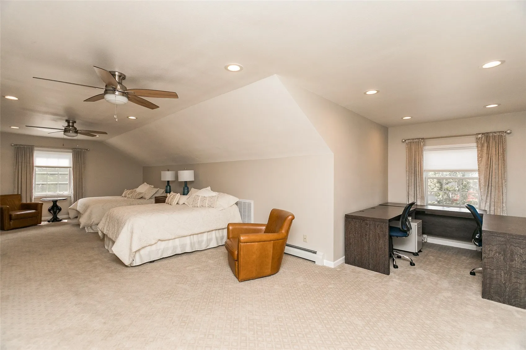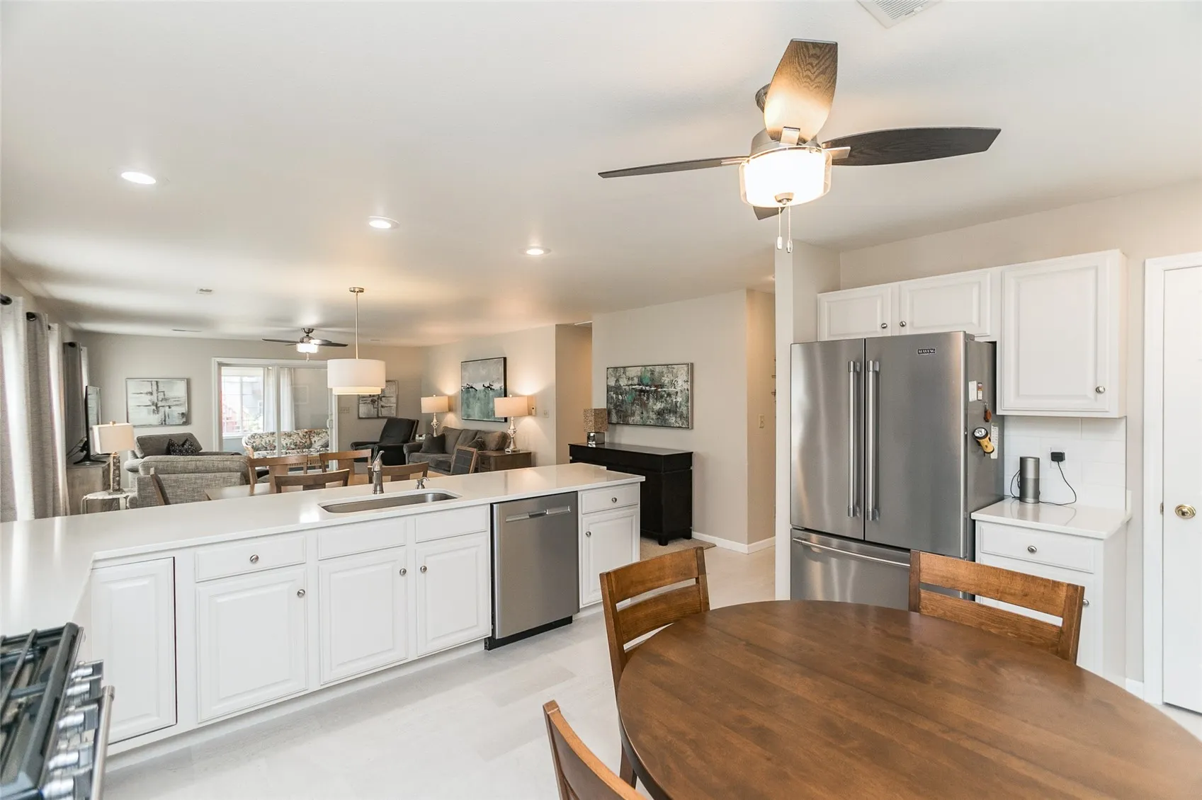 One of the best laid out condos and a show stopper. The moment you step inside this zero entry large foyer you feel this warm and inviting this home has been really well cared for and loved. Beautiful kitchen with quartz counter tops, stainless steel appliances, huge pantry and counter spece, large area for kitchen table and gas stove! Large windows fills the condo with light and the smartly laid out open concept gives each room a space individually but you can view across them all. Beautiful dining area, huge living room. Sliders that lead out onto a newly tiled 3 seasons room that also leads out to a patio. The downstairs halls are wide and there are two bedrooms. The primary is absolutely huge and has a very nicely laid out his and her closets and vanity, as well as a shower and toilet room. The main floor bath has your laundry nicely organized and hidden and a walk in shower! The other bedroom is generous with great closet space. The upstairs is amazing. A sanctuary really, long closets of storage, enough room for two king sized beds or bedroom, living and office/hobby area nook. The beautiful bathroom is custom tiled and has an amazing walk in shower, great soaking tub, and a huge walk in closet. Every detail was thought of in this home. All of this with a large two stall garage, storage room and mechanical room, and lets not forget about the in floor heating through the lower level. This is one to see. It always brings a smile to those who enter, and its great for holidays, entertaining and luxury living.