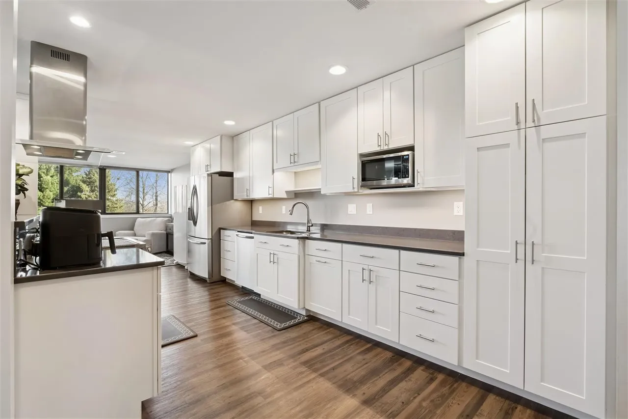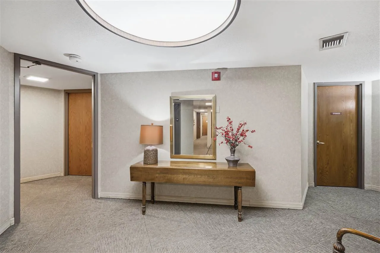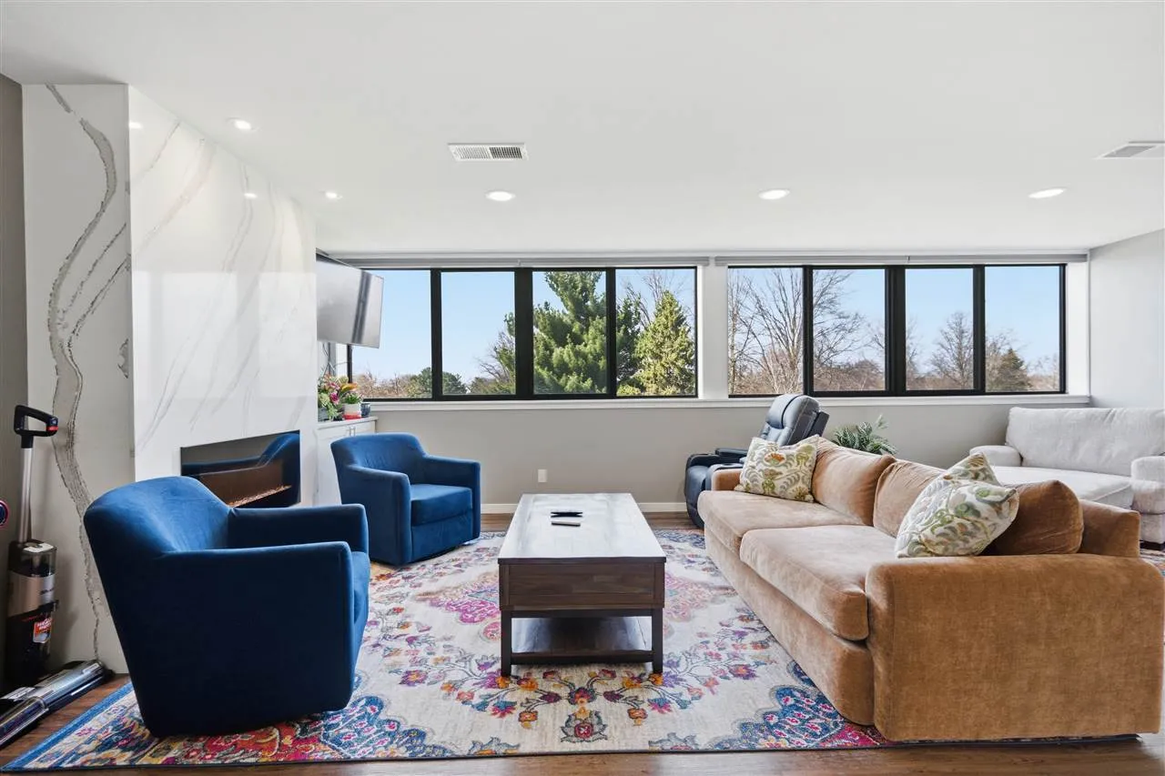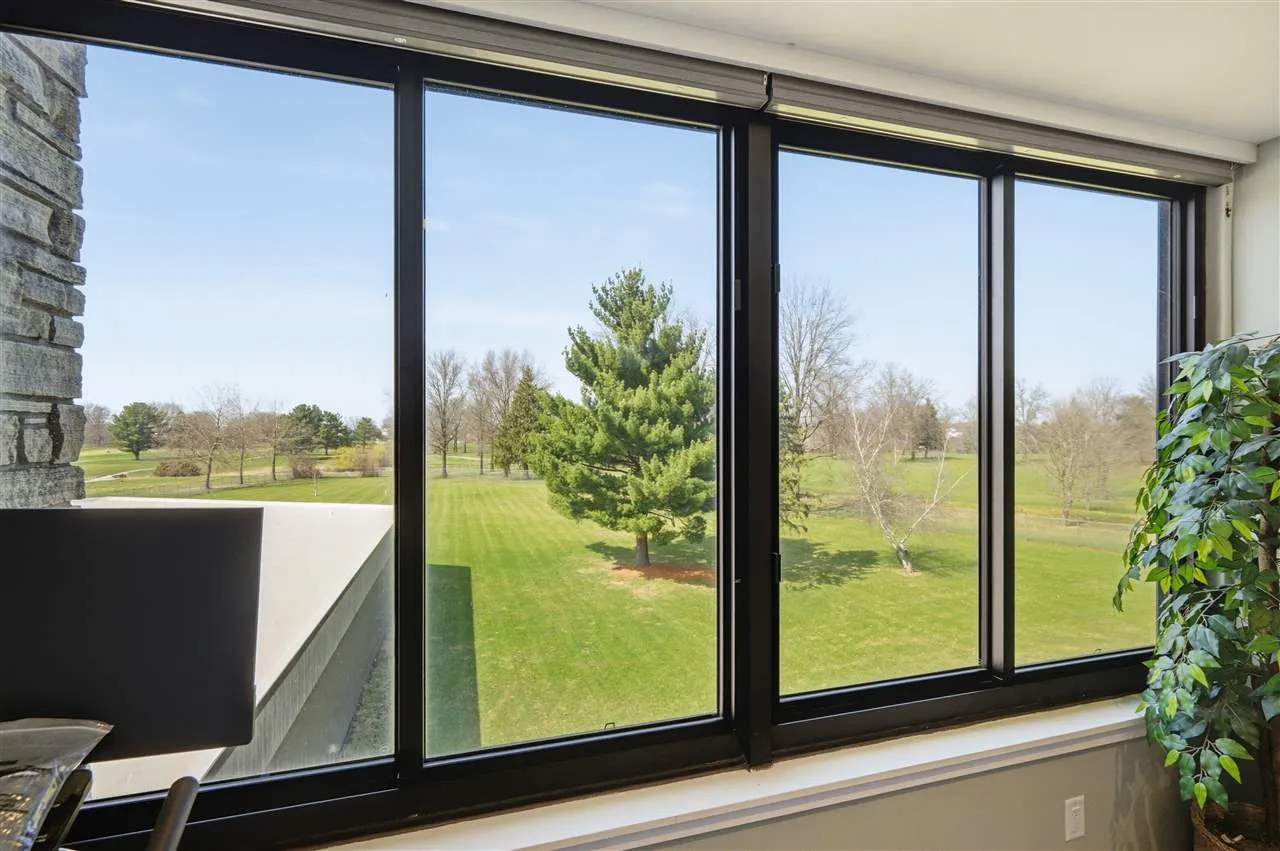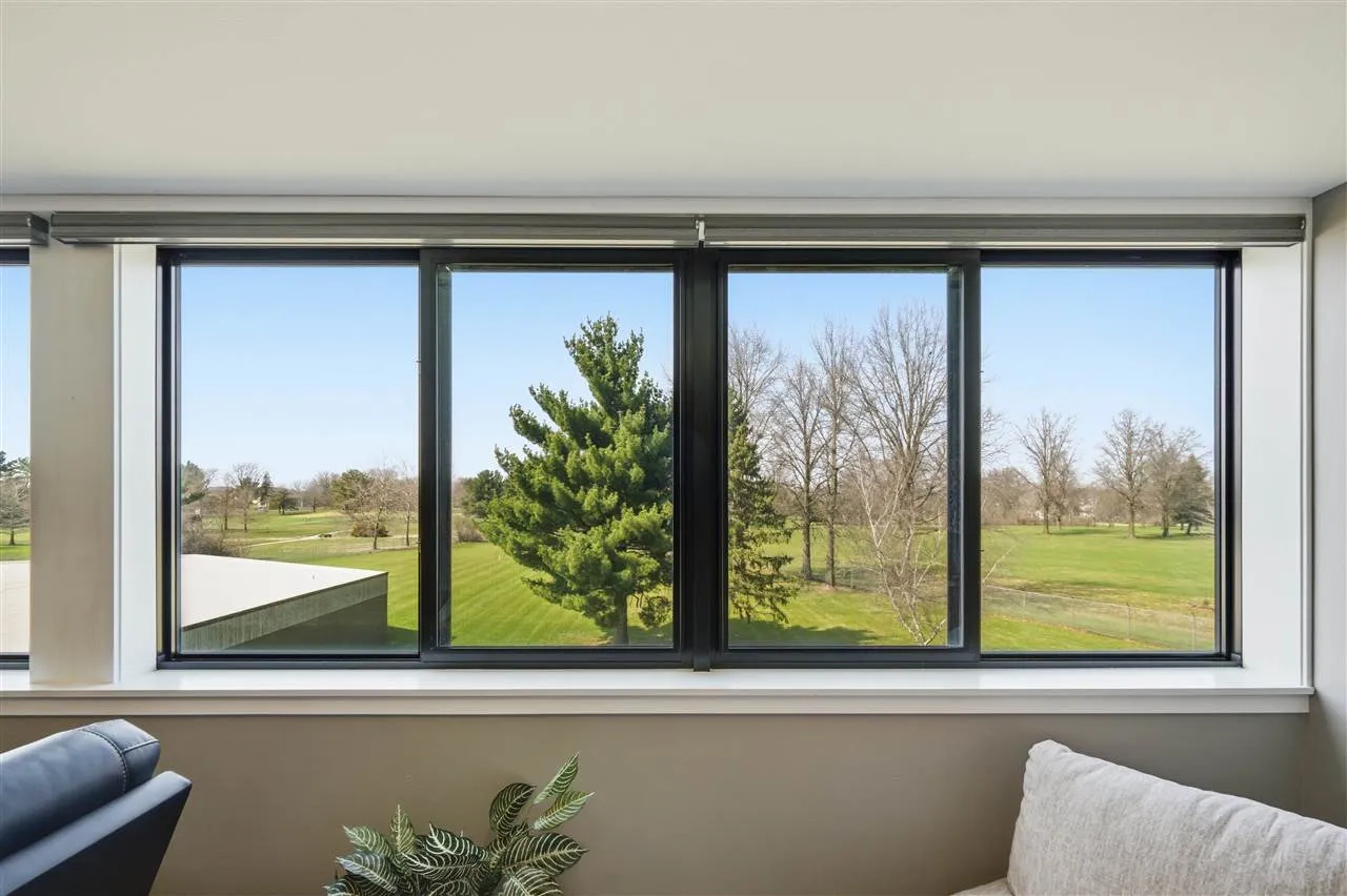GOLF COURSE CONDO! This North Liberty condo overlooks Quail Creek Golf Course with peaceful views of the #1 and #2 fairways. Fully renovated, this unit offers 2 spacious bedrooms and 2 updated bathrooms with a clean, modern finish and extensive updates throughout. Located in a secure elevator building with controlled access, the unit includes two heated underground parking spaces, ample guest parking, and a private lockable storage unit. Interior features an open-concept layout with luxury vinyl plank flooring, electric fireplace, built-ins, and a spacious living and dining area. The kitchen is well-appointed with white cabinetry, quartz countertops, raised breakfast bar, pantry, externally vented hood, and LG InstaView range (30” glass top, 5 burner with convection). In-unit laundry includes a newly installed Maytag washer and dryer. Both bedrooms feature new carpet, full walls of windows, large closets, and ceiling fans. The primary suite includes a private bath with views overlooking the greens. Major updates include a 2025 Lennox furnace and A/C, smart thermostat, whole-home surge protection, and custom remote Levolor cellular shades installed in 2025, completing the full interior renovation. Amenities include indoor pool, hot tub, sauna, locker rooms, fitness area, party room, secured entry, elevator, and more!