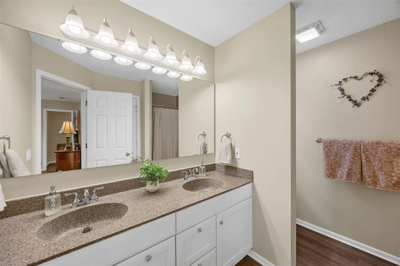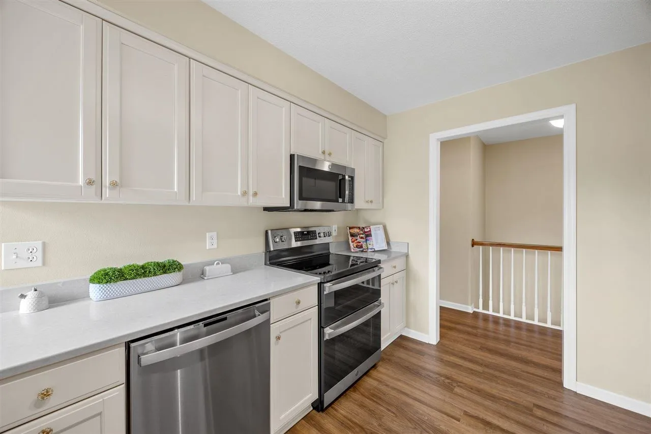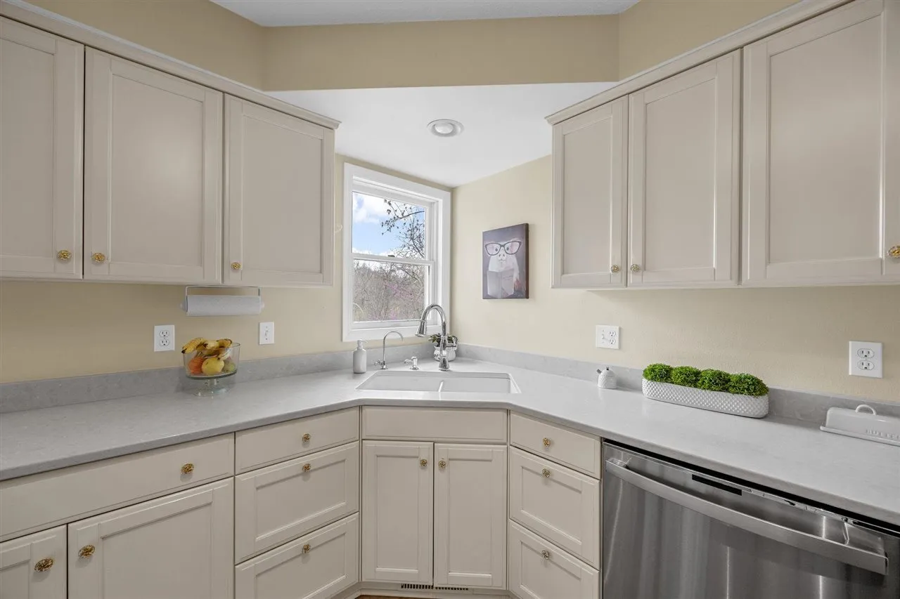 This home offers a prime opportunity to own property in one of the area’s most sought-after locations. Step inside to find a light-filled interior featuring a stunning kitchen refreshed in 2021 with sleek quartz countertops & stainless steel appliances. The primary suite serves as a true sanctuary, boasting double closets & an en suite bath updated in 2021 with a contemporary walk-in shower & a spacious linen closet for effortless organization. The living space extends outdoors to a beautiful composite deck installed in 2022, offering a low-maintenance oasis perfect for morning coffee or evening gatherings. Every detail of this home has been thoughtfully maintained to create a warm, move-in-ready atmosphere. Whether you are hosting friends in the open kitchen or relaxing on the deck, this property offers the perfect blend of style & serenity. Solar is owned outright, & HVAC with built-in humidifier installed around 2023.