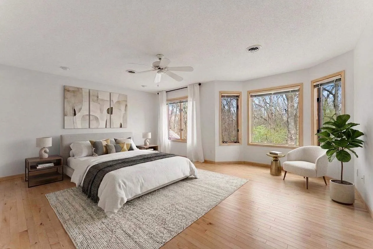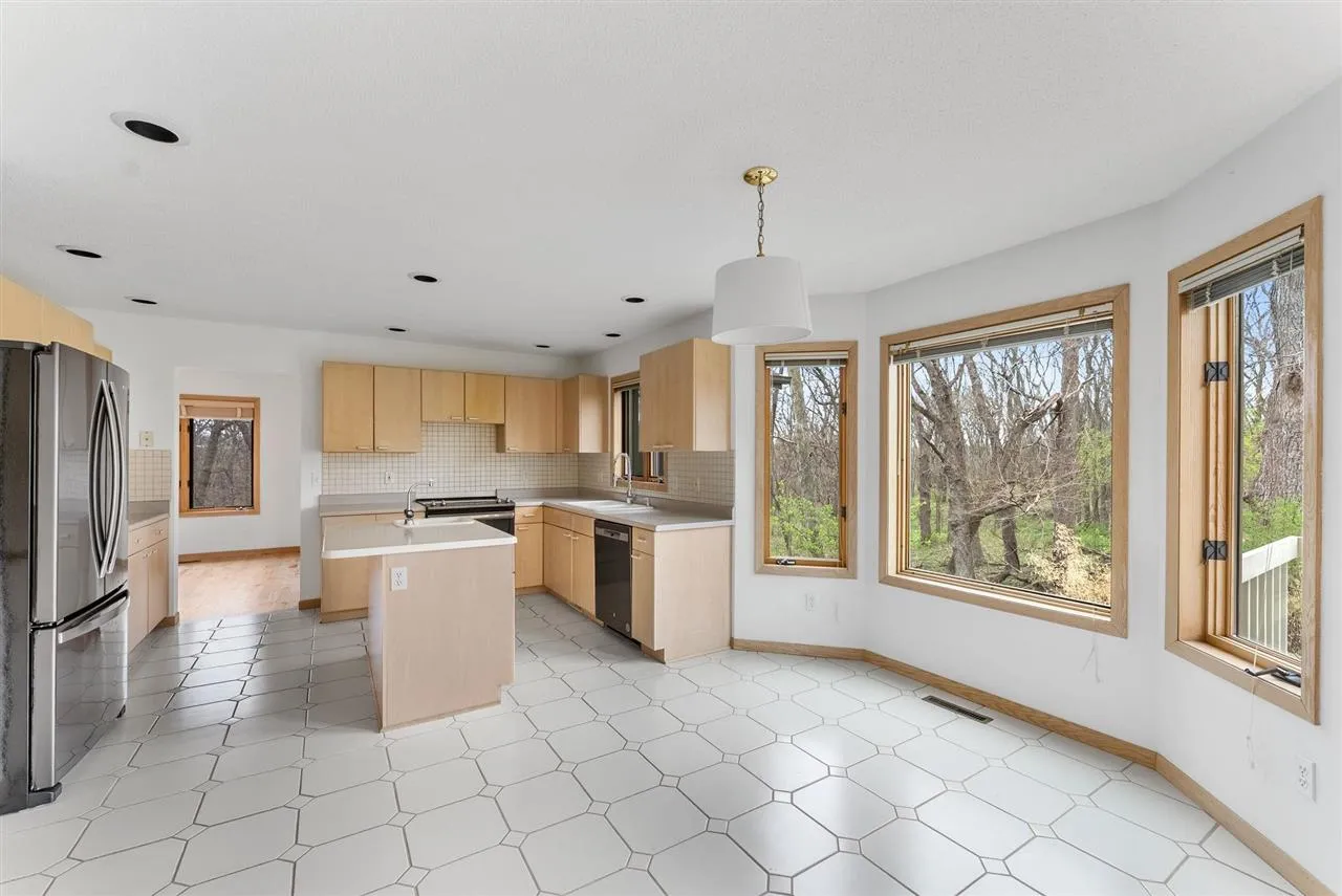 Surround yourself with a peaceful wooded retreat, a rare opportunity right in the heart of Iowa City. This spacious 6 bedroom, 4 bath home is set within a well-established neighborhood close to the U of I/UIHC, schools, and shopping. It delivers quiet privacy yet remains close enough to everyday necessities so you don’t feel inconvenienced. The two-story entrance shows off the soaring ceiling, gorgeous hardwood floors, and spacious formal living space and dining room. From the dining area you can enjoy panoramic nature views on the screened-in porch. The spacious kitchen is complete with updated appliances, an island with prep sink, large pantry, and adjoining breakfast nook. A welcoming family room with wood burning fireplace and access to a large deck extends this cozy space. There is an additional bedroom, bath, and laundry room on the main level as well. Upstairs you’ll find a massive primary suite with sitting area. The suite also features double closets, large double vanity, soaking tub, and separate toilet room. Three more generously sized bedrooms and full bathroom are just down the hall. The walk-out lower level expands the home’s versatility with a large rec room, full bath, an additional bedroom suite also with it’s own hobby/sitting area and huge walk-in closet.