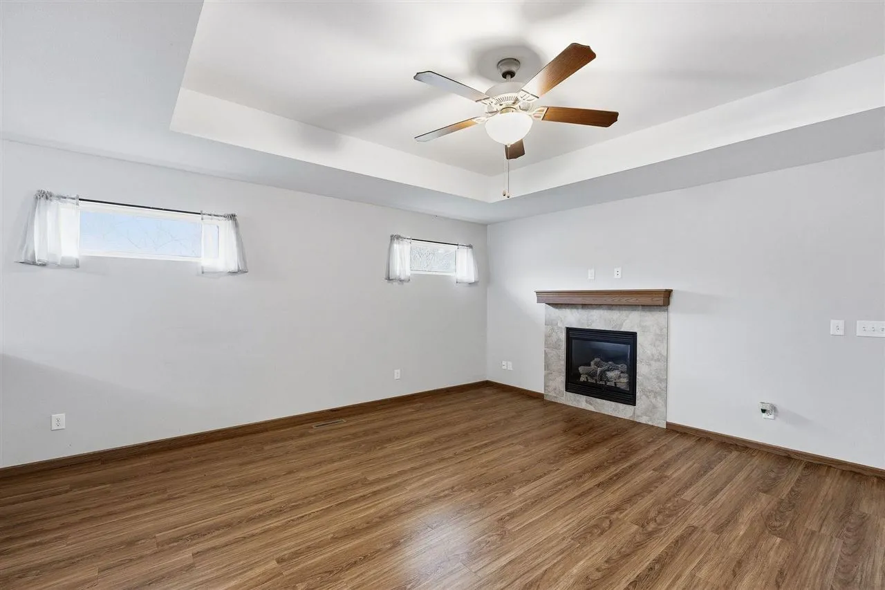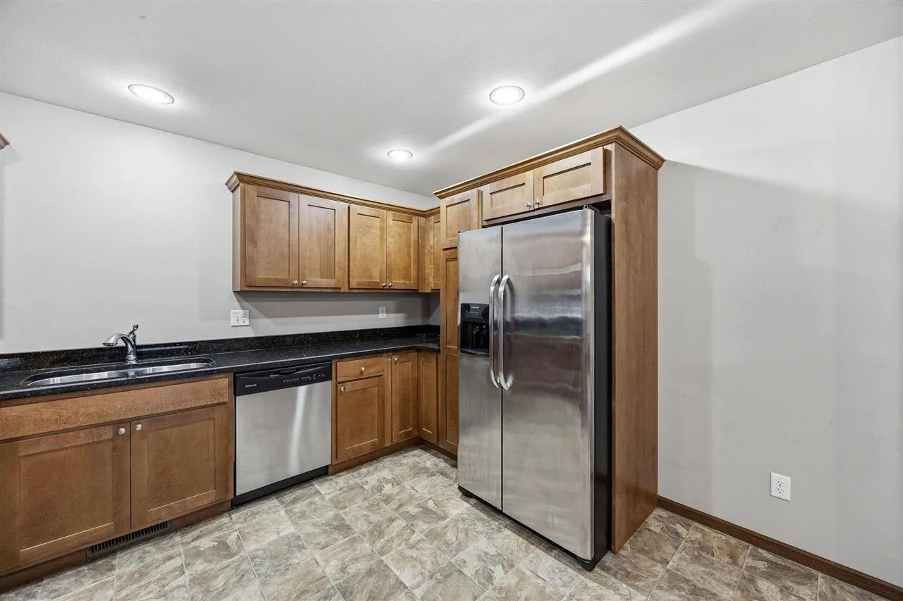 Step into easy living with this beautifully maintained end-unit condo that truly checks all the boxes. From the moment you walk in, you’ll appreciate the warmth of the updated LVP flooring and the inviting living room centered around a cozy gas fireplace. The kitchen offers rich, dark stone countertops paired with warm stained cabinetry, creating a space that feels both stylish and functional. Enjoy peaceful mornings or relaxing evenings on the screened-in deck overlooking a private, wooded backdrop. The main level features two bedrooms, two bathrooms, and convenient laundry, while the finished lower level provides a spacious rec room, an additional bedroom and bath, plus plenty of storage. With a two-car attached garage and a move-in ready condition, this home offers comfort, space, and low-maintenance living in one complete package! Schedule your showing today!