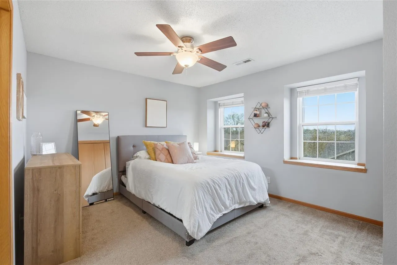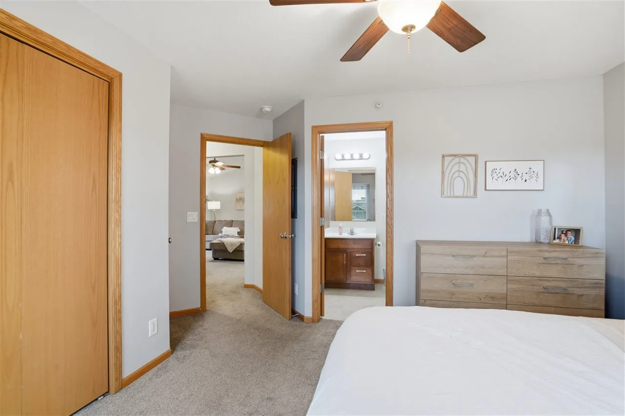 This 2 bed, 2 bath home is as cute as a button. Enjoy the privacy of top floor living with this updated condo. Special features include vaulted ceiling, tasteful paint, corner fireplace, and private deck. Large kitchen with tons of cabinet space, eating bar, and stainless steel appliances. Primary bedroom has large closet and private ensuite bathroom. Second bedroom also connects to hall bath making it ideal for guests. And it’s got a one car detached garage right behind the building. Great location close to the new UI hospital or easy access to I380.