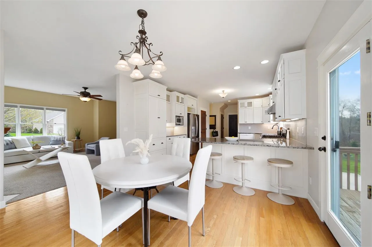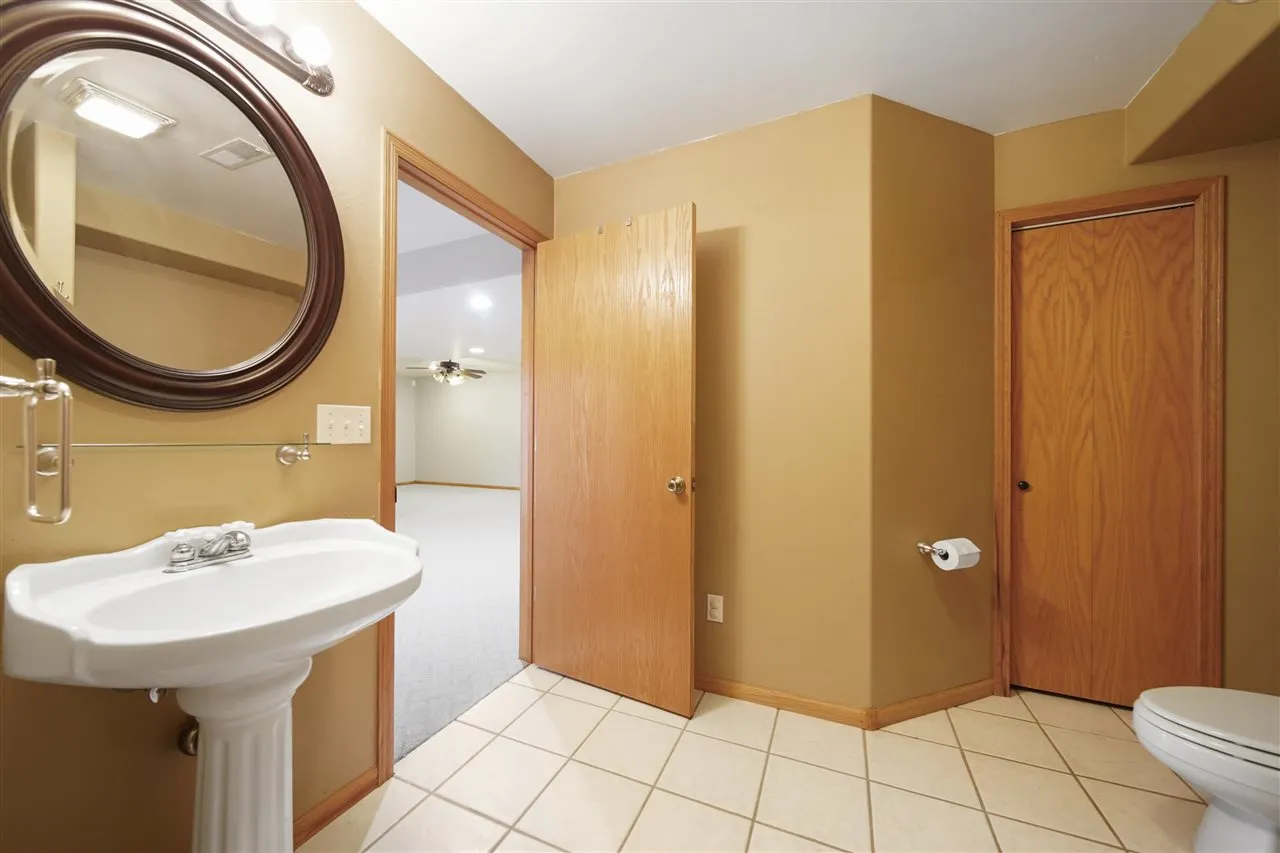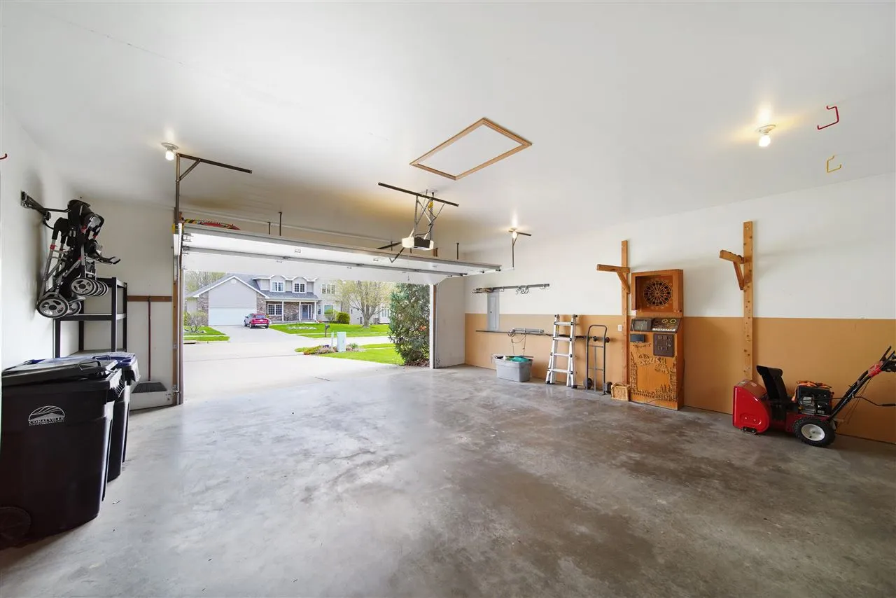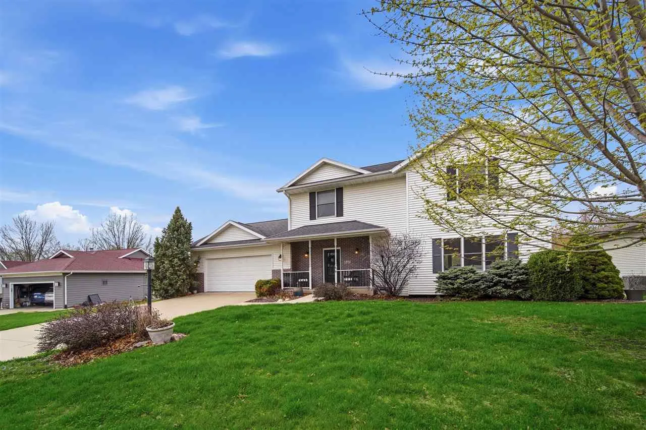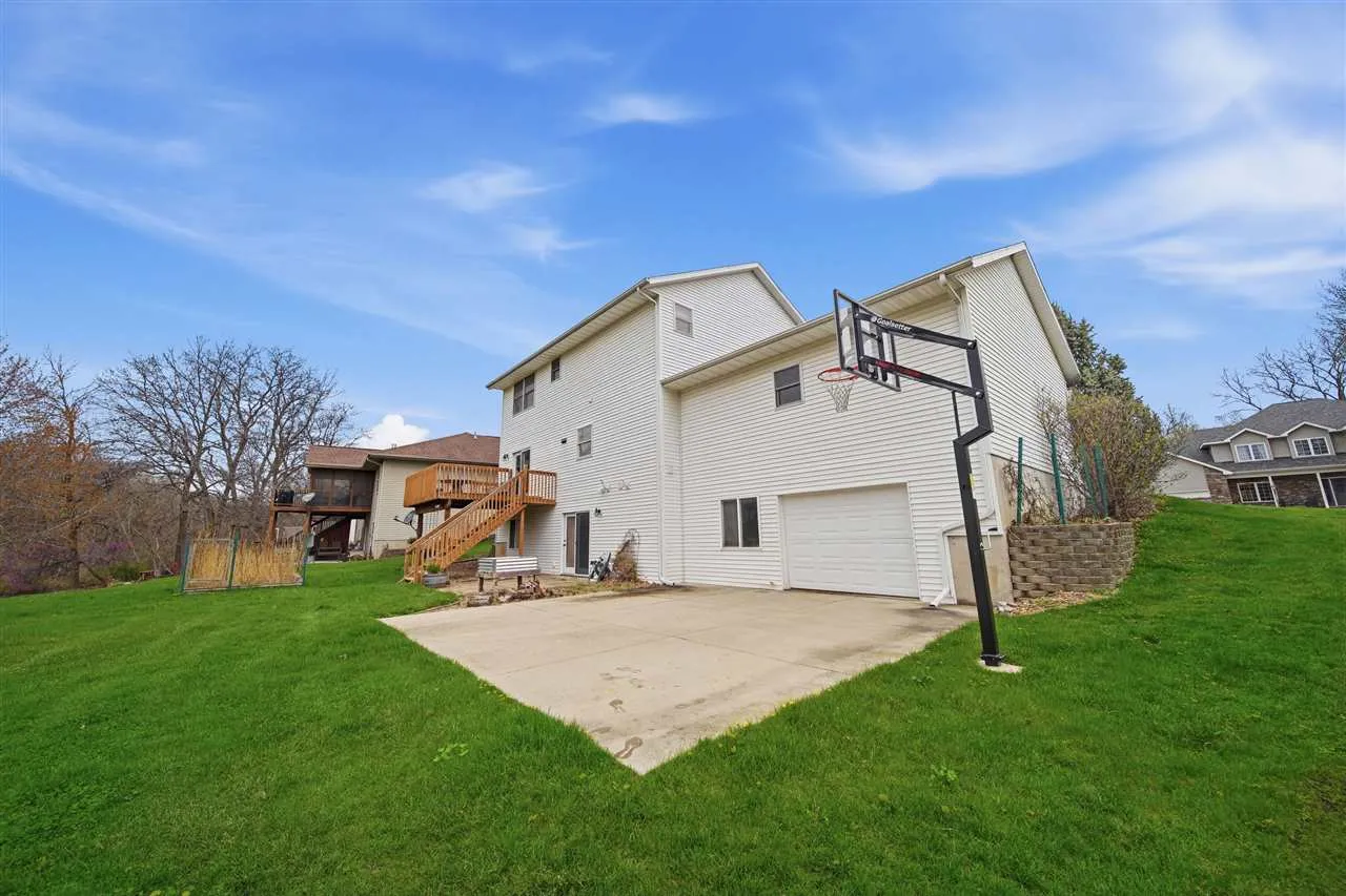 Very well cared for and nicely updated 2 story on one of the prime lots in Forest Edge Estates adjacent to over 14 acres of HOA common space with a tremendous yard and beautiful wooded and pond views close to Wickham elementary, paved walking/bike trails, Brown Deer Golf Course and shopping! There are 4 bedrooms including a 14×16 primary suite with an 11 ft walk-in closet; warm hardwood flooring; spacious updated kitchen featuring premium cabinetry with some glass doors and crown moldings, granite counters with breakfast bar, convenient pantry and a French door style refrigerator, gas range/oven, professional grade Zephr hood vent and Bosch dishwasher; 1st floor laundry room with washer/dryer; living room with a cozy stone fireplace; deck with stairs to a tremendous paver stone patio; expansive 13×24 + 12×14 walkout lower level family room; rich solid wood doors including a great use of some “barn doors” and wide painted trim on the top 2 floors; 9 ft main level ceilings; Pella Windows; 23×23 basketball court with Goalsetter hoop; and a 22×24 basement garage under the main garage equipped with B-I shelving, work bench and overhead door! Updates: new top floor carpet, Carrier furnace and air conditioning, solid oak interior doors on the main/upper level, basketball court, water heater, kitchen remodel, and garage overhead door.