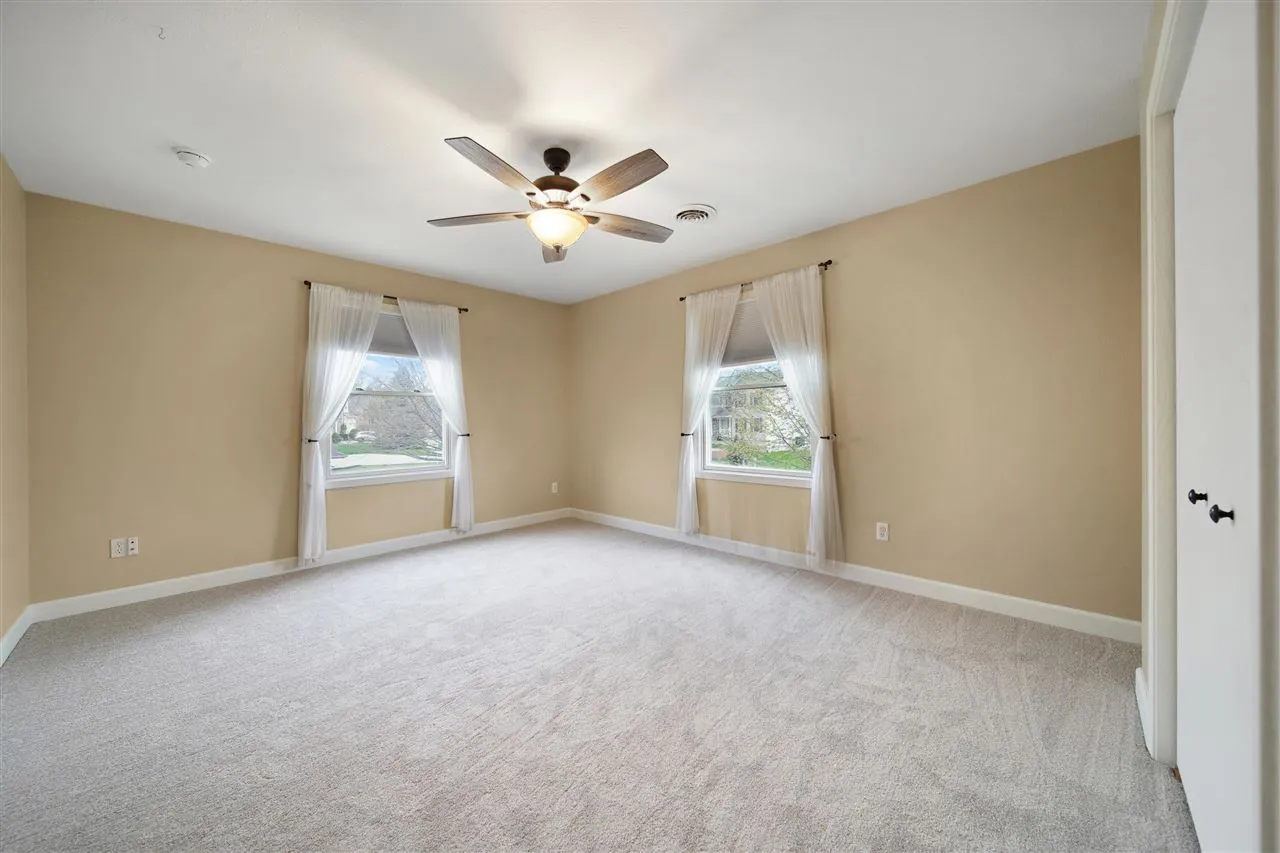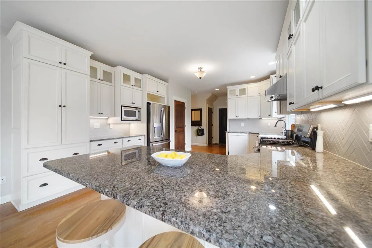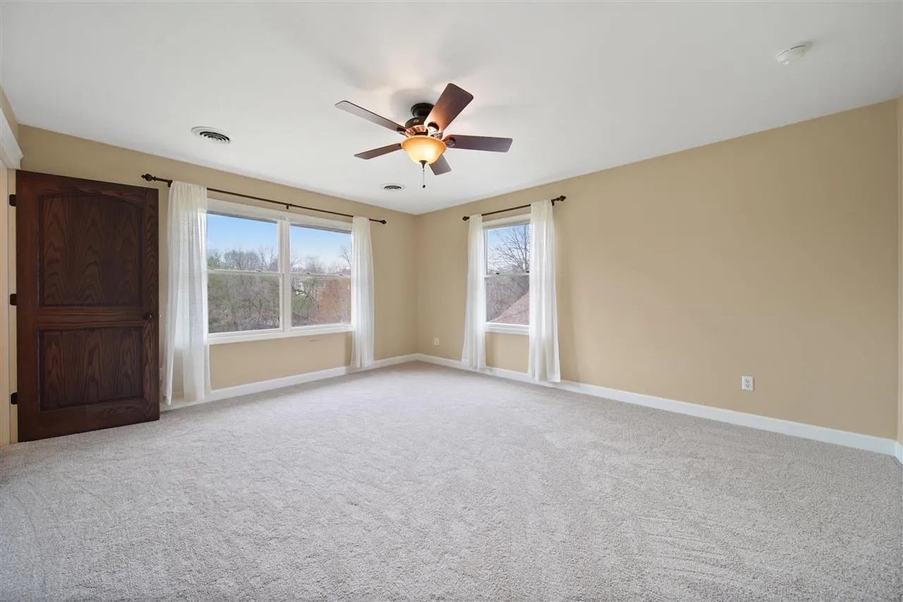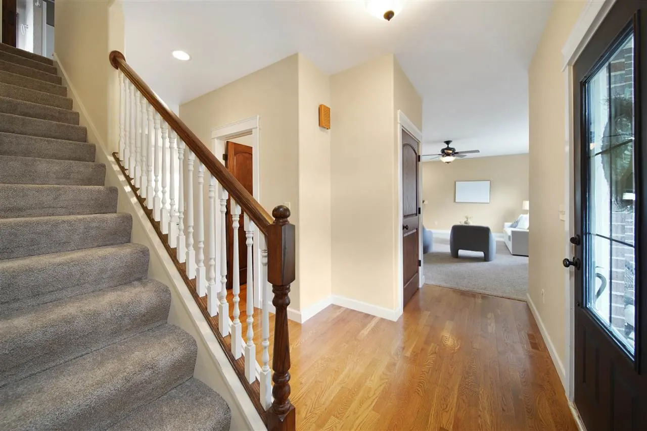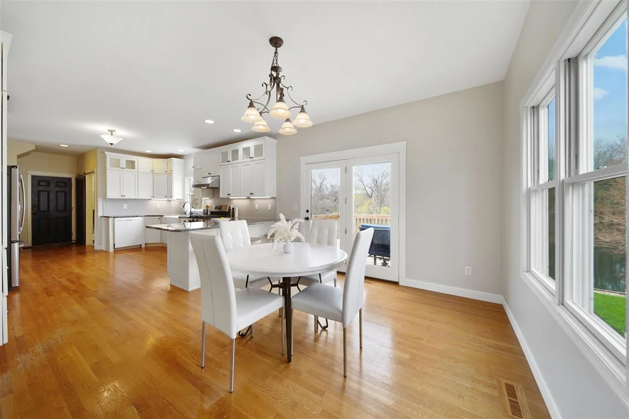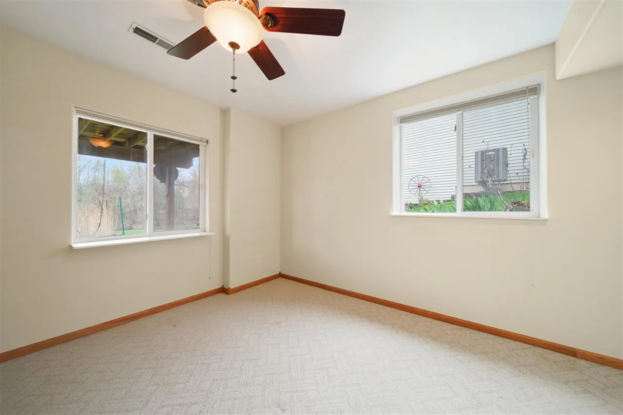 Very well cared for and nicely updated 2 story on one of the prime lots in Forest Edge Estates adjacent to over 14 acres of HOA common space with a tremendous yard and beautiful wooded and pond views close to Wickham elementary, paved walking/bike trails, Brown Deer Golf Course and shopping! There are 4 bedrooms including a 14×16 primary suite with an 11 ft walk-in closet; warm hardwood flooring; spacious updated kitchen featuring premium cabinetry with some glass doors and crown moldings, granite counters with breakfast bar, convenient pantry and a French door style refrigerator, gas range/oven, professional grade Zephr hood vent and Bosch dishwasher; 1st floor laundry room with washer/dryer; living room with a cozy stone fireplace; deck with stairs to a tremendous paver stone patio; expansive 13×24 + 12×14 walkout lower level family room; rich solid wood doors including a great use of some “barn doors” and wide painted trim on the top 2 floors; 9 ft main level ceilings; Pella Windows; 23×23 basketball court with Goalsetter hoop; and a 22×24 basement garage under the main garage equipped with B-I shelving, work bench and overhead door! Updates: new top floor carpet, Carrier furnace and air conditioning, solid oak interior doors on the main/upper level, basketball court, water heater, kitchen remodel, and garage overhead door.