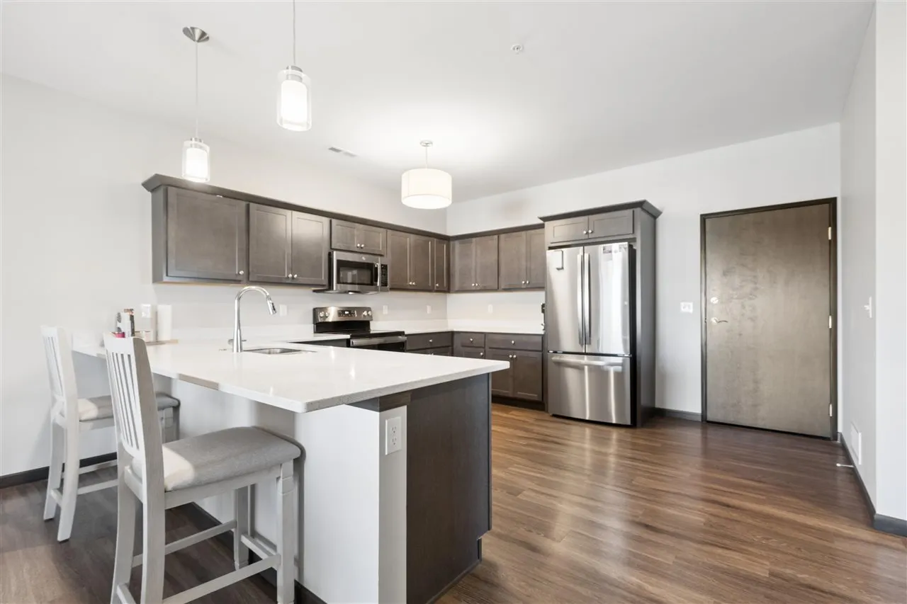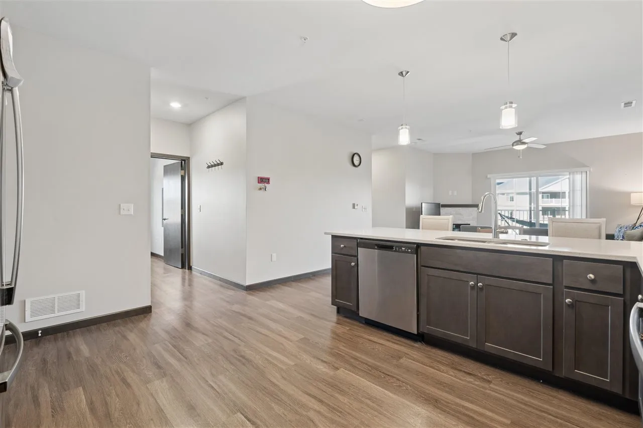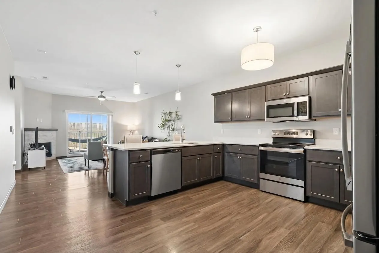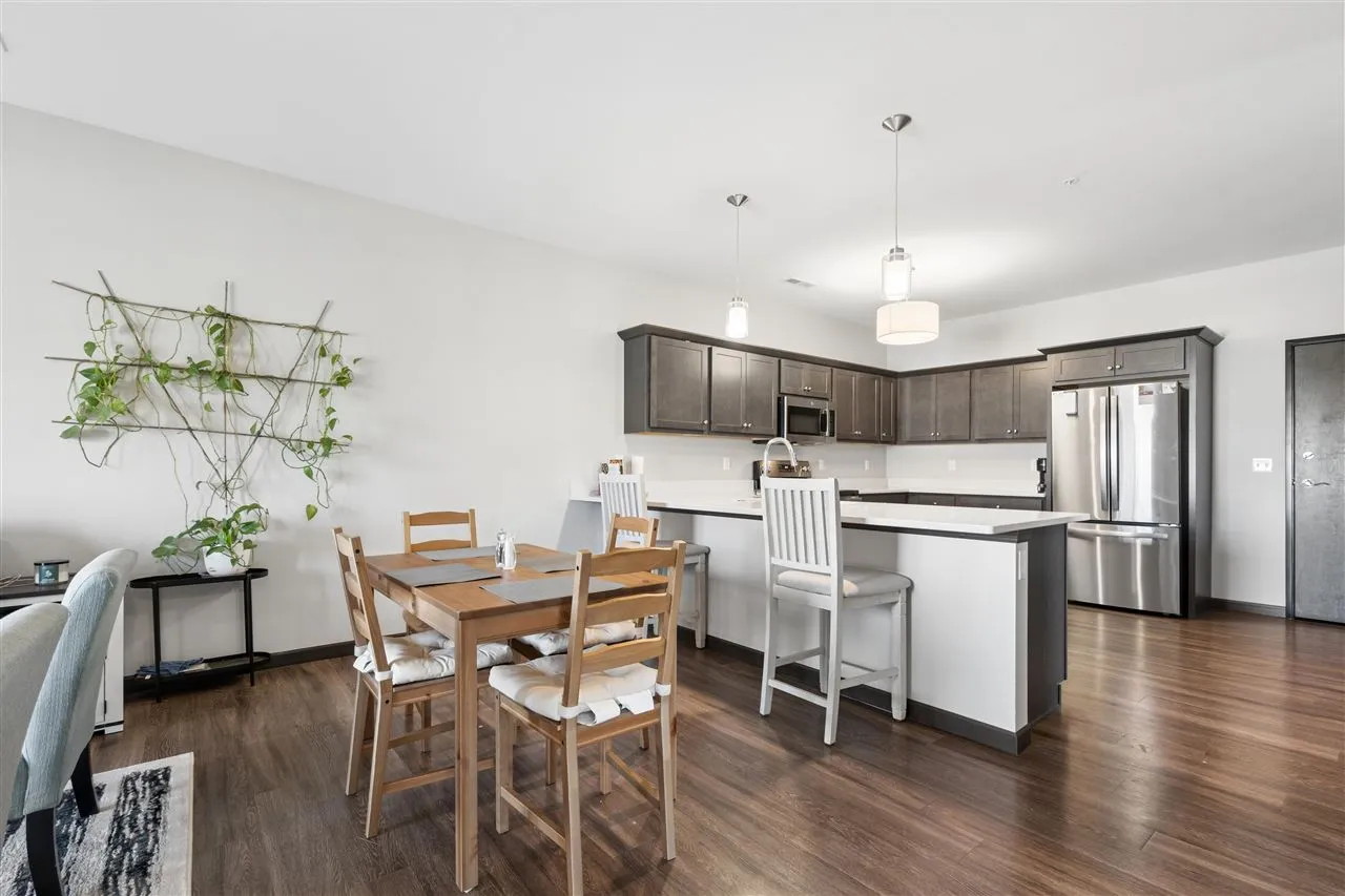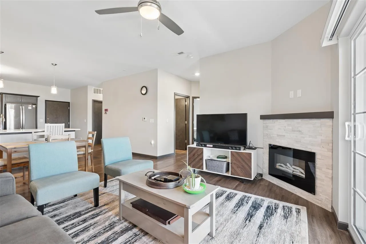 Don’t miss the #1 floor plan in this complex. This is one of the few floor plans that could truly be used as a 3 bedroom/2 bath. It features 2 bedrooms and 2 full baths, with a spacious den that could easily be a third bedroom with the addition of a wardrobe. Enjoy all the perks of luxury condo living, including private corner unit, tall ceilings, elevator service, and heated underground parking. This nearly new condo is completely move in ready. The kitchen has tons of cabinet space, updated appliances, and quartz countertops. Other features include large private deck, corner fireplace, separate laundry room with storage. The neighborhood has plenty of green spaces, walking trails, and a pond for a serene backdrop, viewable from both bedrooms and den. Built in 2022 you don’t have to worry about any of the mechanicals or appliances giving out – there’s even a new water softener included. One assigned underground parking spot will come with the unit and there’s plentiful guest parking behind the building.