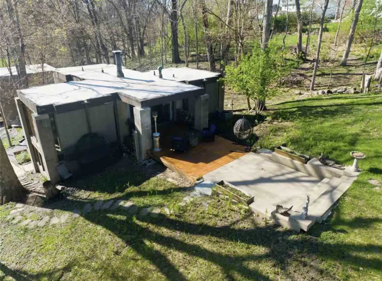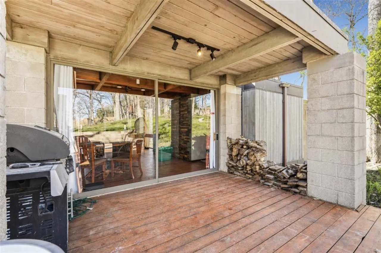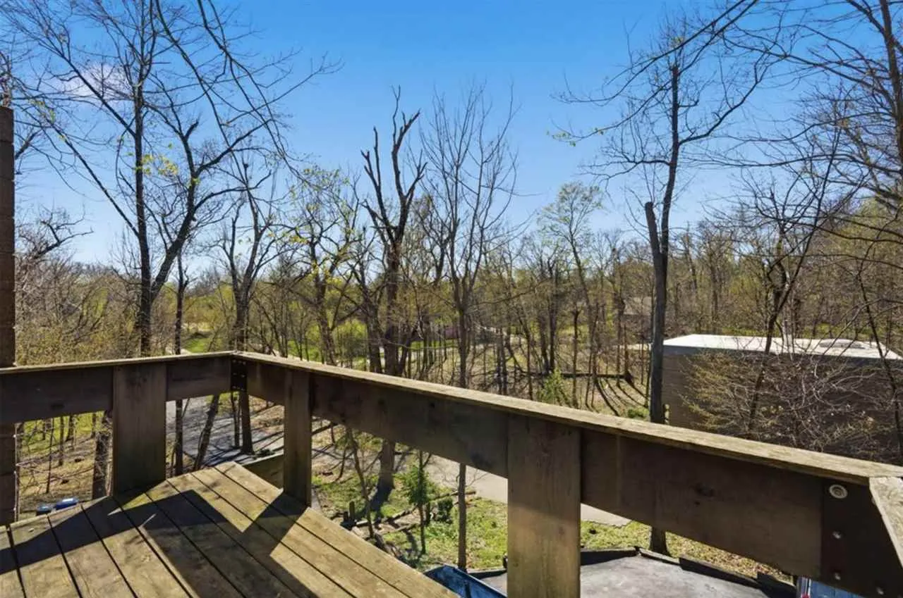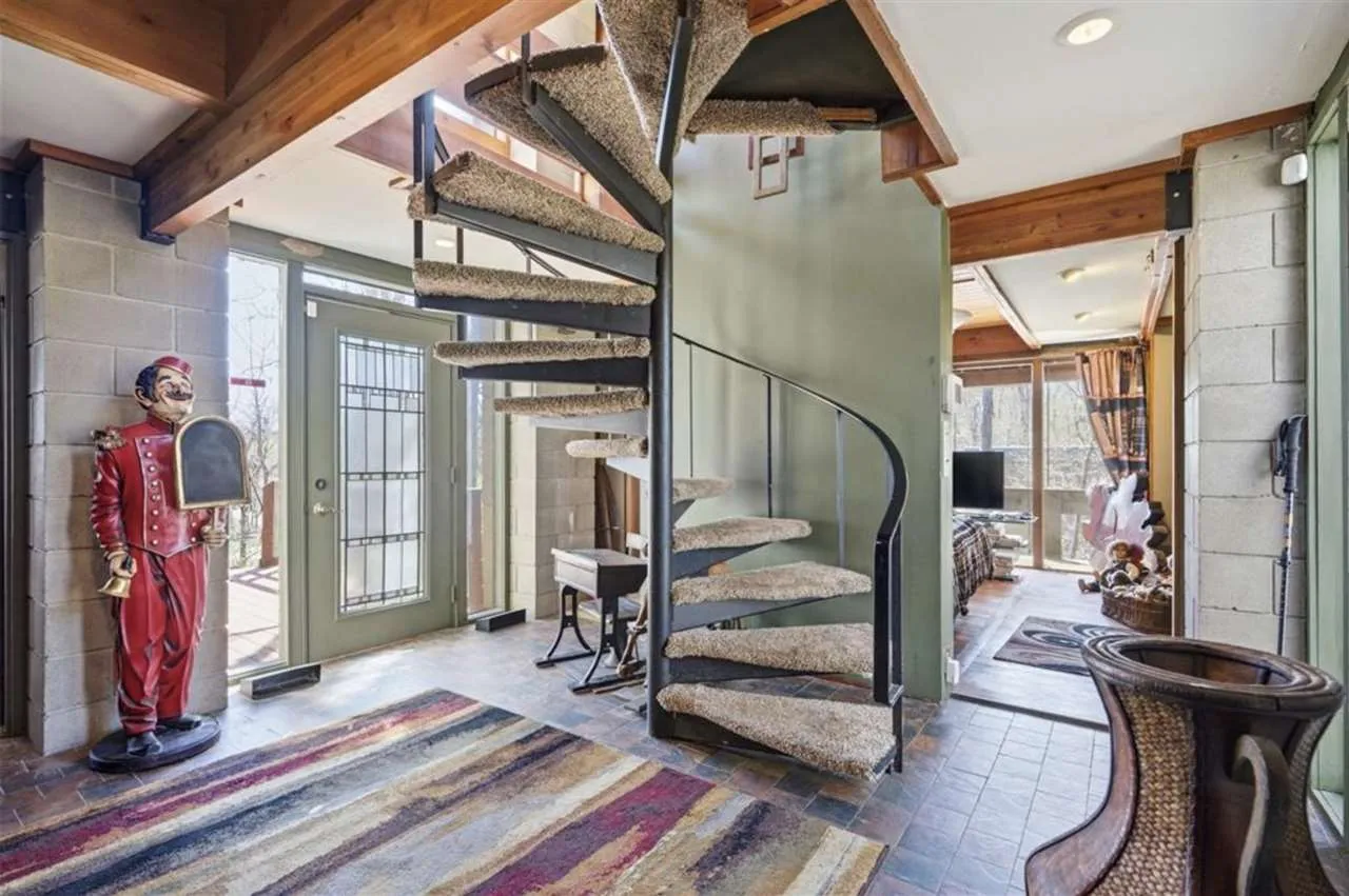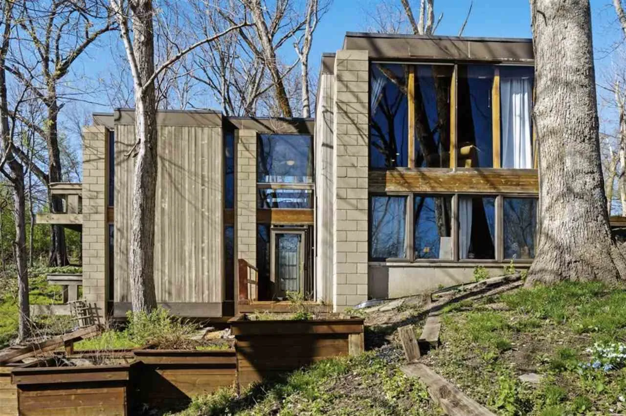 Acreage & architecturally distinctive contemporary home nestled among mature trees, featuring bold geometric lines, concrete block construction, and expansive windows framing wooded views. Designed and built by noted designer Thomas Reilly—who personally resided in the home—this property reflects exceptional craftsmanship and recognized architectural significance. Multi-level decks, soaring ceilings, and a striking spiral staircase create visual interest, while warm wood accents balance the modern design. Walls of glass connect indoor and outdoor living, filling the home with natural light and offering peaceful treetop views from nearly every room. The unique layout provides inviting gathering spaces alongside a dedicated piano room for creativity or quiet retreat. Custom built-ins enhance both function and design continuity. Outside, expansive decks and terraces offer ideal spaces for relaxing and entertaining. A reclaimed wood accent wall—reportedly sourced from a historic pirate ship—adds character and conversation. Add’l storage beneath the carport/drive adds practical value. The hillside setting provides privacy while remaining conveniently located. A truly one-of-a-kind property blending design, comfort, and nature with multiple gathering spaces that feel both open and inviting, the home celebrates its natural surroundings