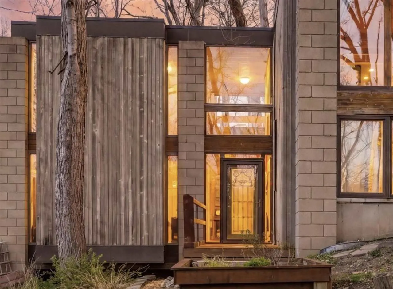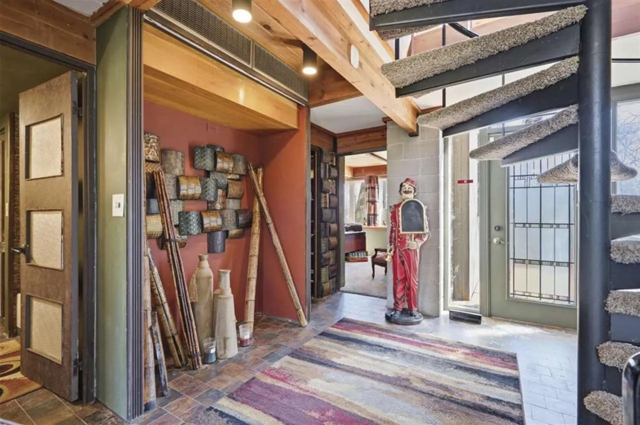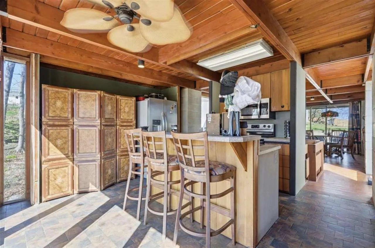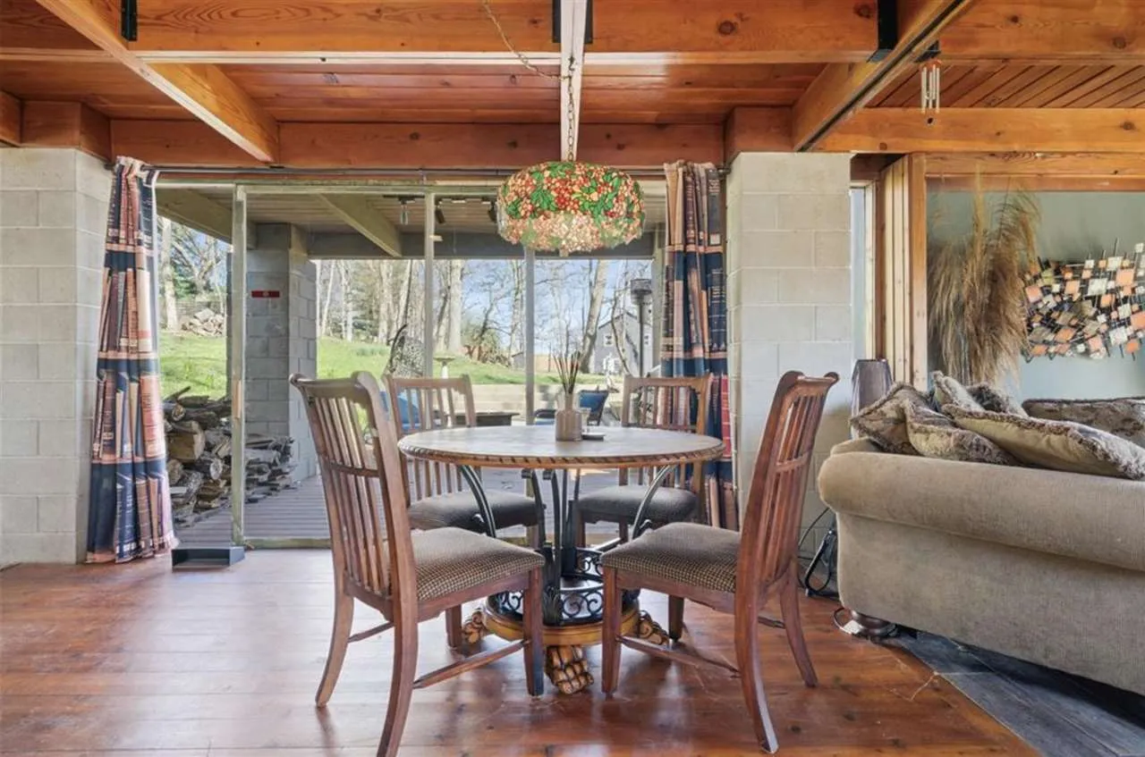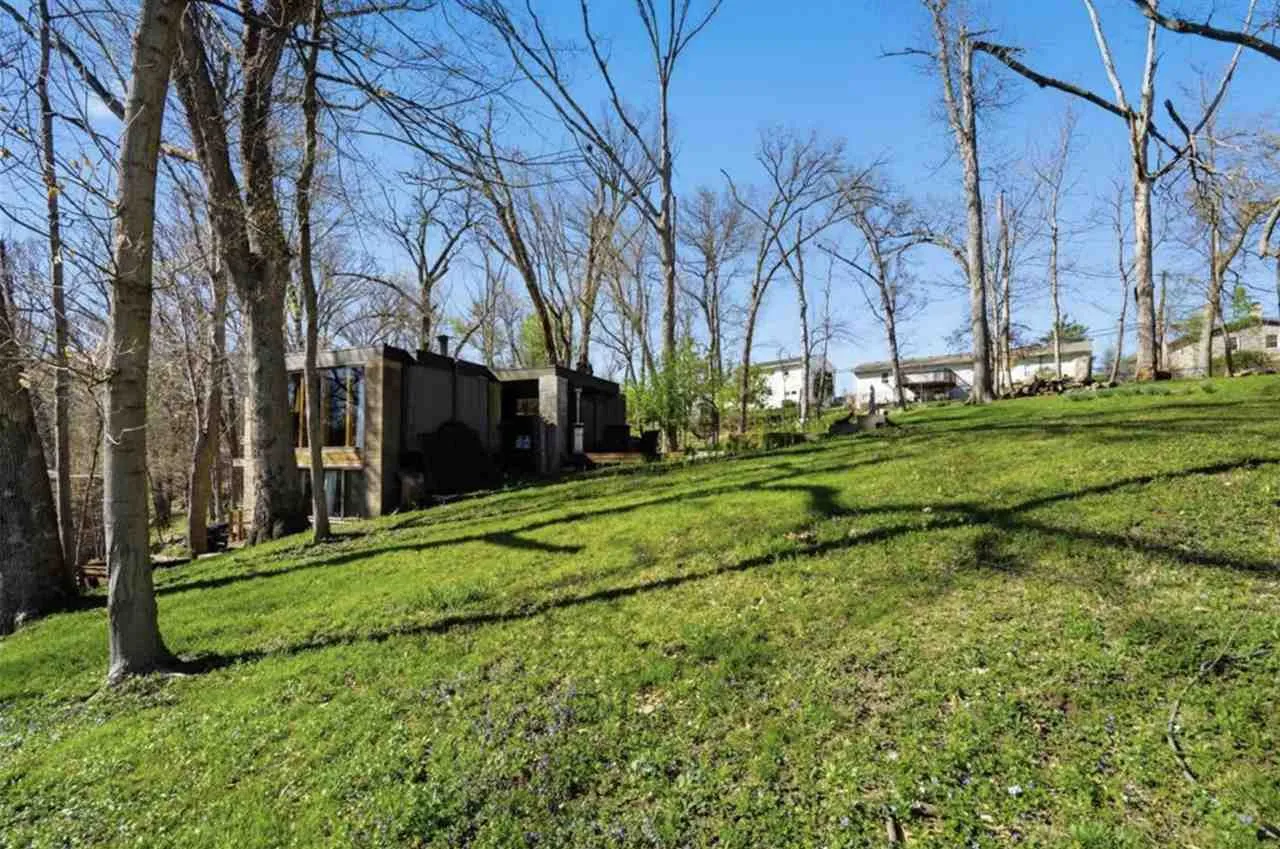 Acreage & architecturally distinctive contemporary home nestled among mature trees, featuring bold geometric lines, concrete block construction, and expansive windows framing wooded views. Designed and built by noted designer Thomas Reilly—who personally resided in the home—this property reflects exceptional craftsmanship and recognized architectural significance. Multi-level decks, soaring ceilings, and a striking spiral staircase create visual interest, while warm wood accents balance the modern design. Walls of glass connect indoor and outdoor living, filling the home with natural light and offering peaceful treetop views from nearly every room. The unique layout provides inviting gathering spaces alongside a dedicated piano room for creativity or quiet retreat. Custom built-ins enhance both function and design continuity. Outside, expansive decks and terraces offer ideal spaces for relaxing and entertaining. A reclaimed wood accent wall—reportedly sourced from a historic pirate ship—adds character and conversation. Add’l storage beneath the carport/drive adds practical value. The hillside setting provides privacy while remaining conveniently located. A truly one-of-a-kind property blending design, comfort, and nature with multiple gathering spaces that feel both open and inviting, the home celebrates its natural surroundings