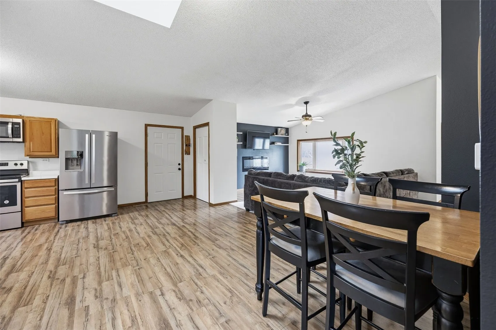 This home features a spacious open floor plan highlighted by soaring vaulted ceilings. The layout offers generous living and dining spaces with a cozy built-in fireplace in the main living area. The large deck is perfect for grilling and entertaining. The property also features an oversized garage with ample room for vehicles and storage. All appliances are included. Listing agent is related to seller.
