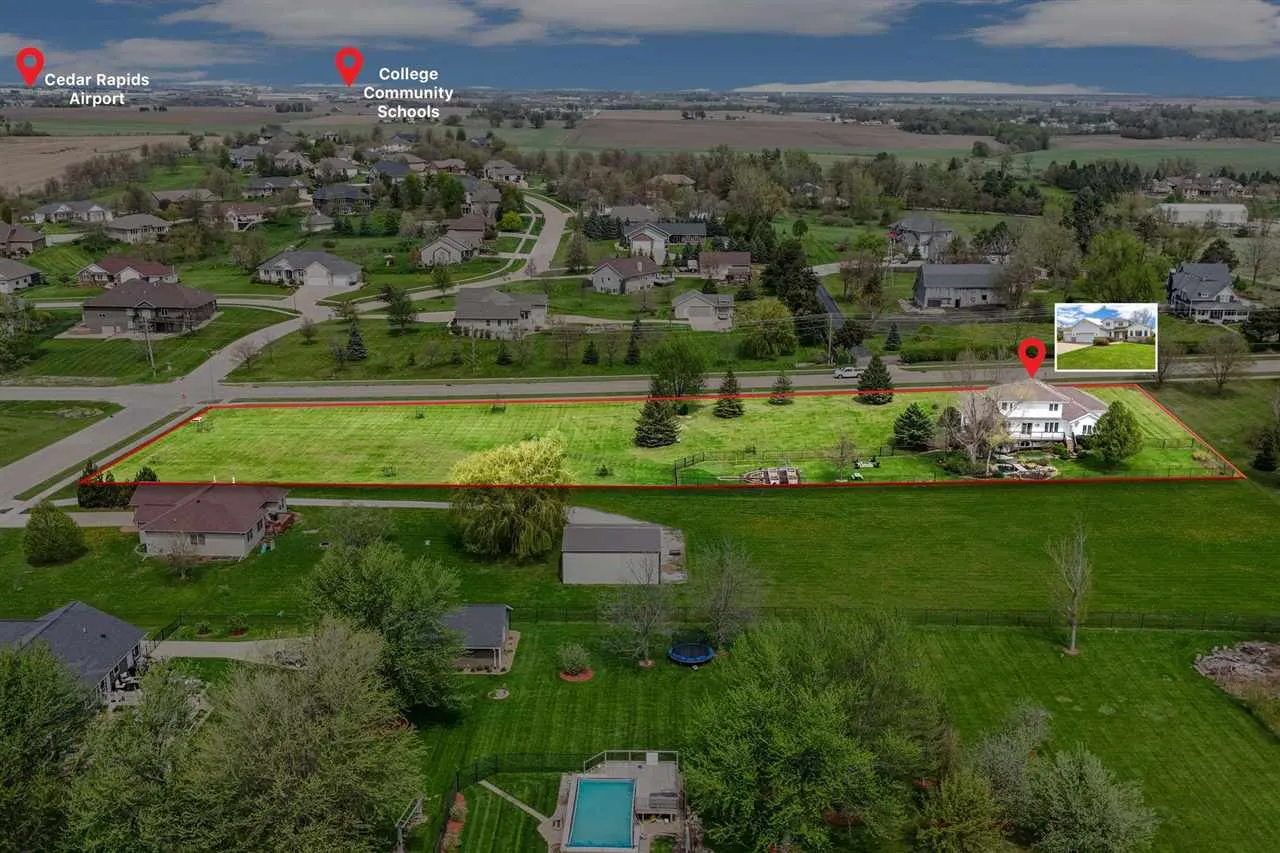 Welcome to this custom-built, one-owner home on 2.7 acres in the College Community School District, just minutes from schools, Lake MacBride, the Cedar Rapids Airport, and an easy commute to Cedar Rapids and the Iowa City Corridor. With over 4,200 finished square feet, this home offers exceptional space and flexibility. The main level features a private primary suite, a dedicated office with its own entrance, and an updated kitchen with newer appliances and breakfast bar that opens to a warm family room with a gas fireplace. Upstairs offers three spacious bedrooms and a full bath. The finished lower level includes a second kitchen area, dining space, rec room, craft area, half bath, and ample storage. Enjoy the full-length back deck with access from the primary suite and peaceful pond and waterfall views. The landscaped grounds include perennials, trees, raised garden beds, and a firepit area. Additional highlights include first-floor laundry and a spacious garage with a deep third stall. A rare opportunity to own an in-town acreage with space, privacy, and convenience.