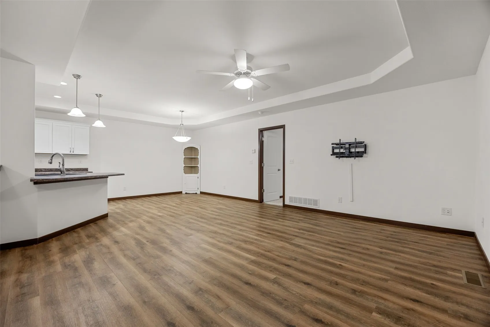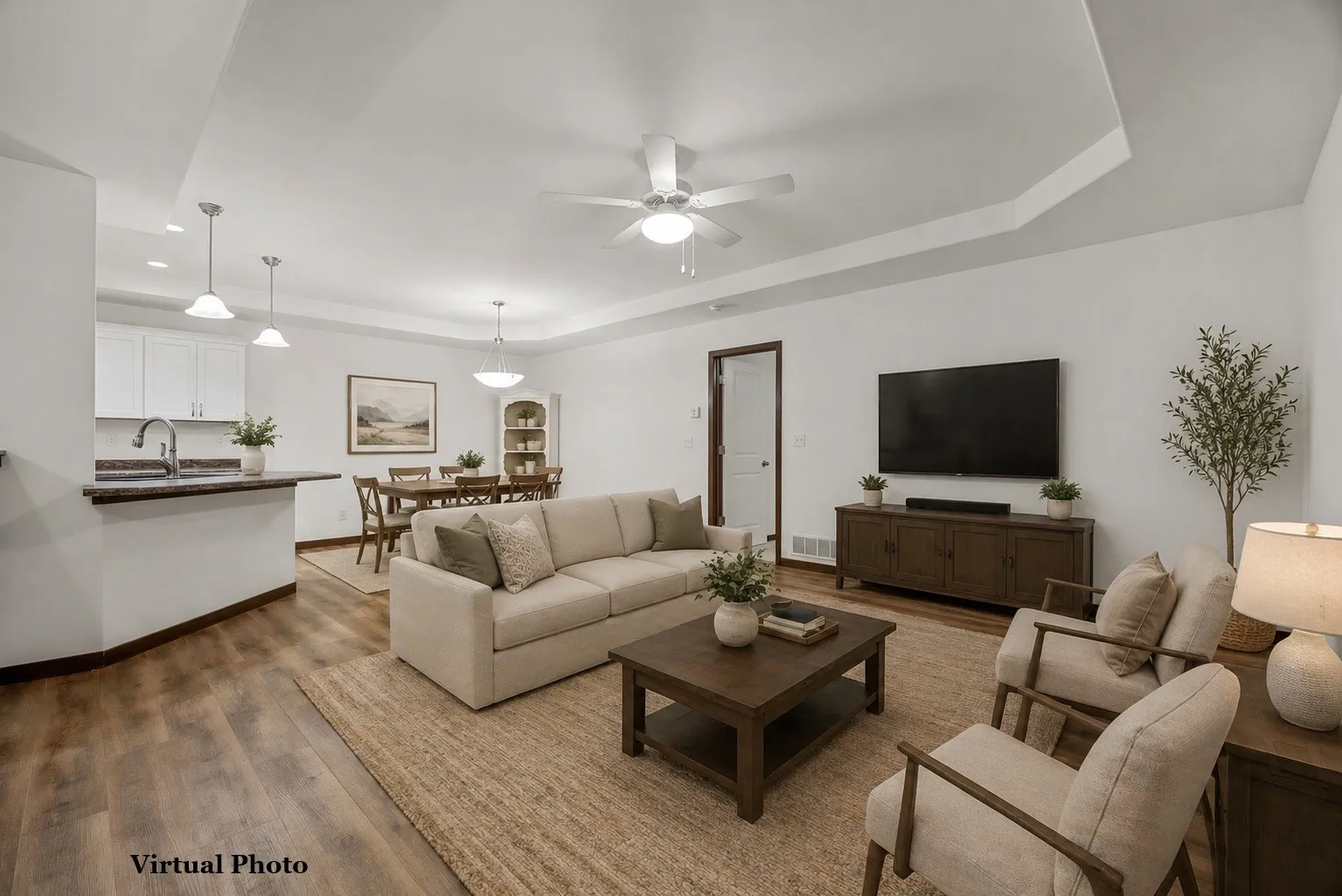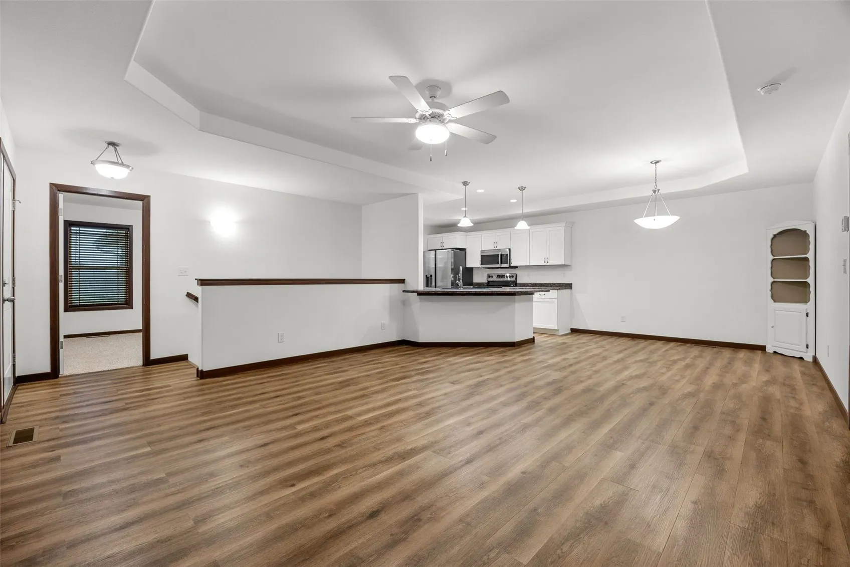Welcome home to this beautiful, move-in ready ranch-style condo. This home features a terrific open floor plan with two bedrooms and two bathrooms, making it an ideal space for both comfortable living and entertaining. Upon entering, you will find a spacious great room featuring LVP flooring and an elegant tray ceiling that flows seamlessly into the kitchen and dining areas. The kitchen is well-appointed with a large breakfast island, stainless steel appliances, a pantry for storage, pull out garbage & recycling & soft close lower cabinets. The primary suite offers a private retreat with tray ceiling, a large walk-in closet, and an en-suite bath featuring a double-sink vanity. The second bedroom with convenient access to the main bathroom and main floor laundry with the washer and dryer included. The unfinished lower level is ready for your personal touch with daylight windows, stubbed-in bathroom, already mitigated for radon, all providing endless possibilities for customization. Attached 2 car garage. The property is perfectly situated near a variety of shopping and dining options with easy access to Edgewood Road. Two pets weighing 110 lbs or less are allowed inside each unit (see HOA documents for more information). Start up fee is