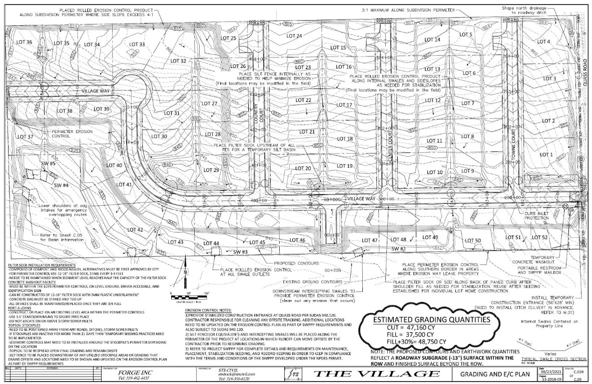 Lot 5 available now, 0.36 acres, egress grade. Peaceful country setting for single family building lots. Larger lots up to half an acre with 90′ to 146′ wide curb width. Lot 5 107.81′ curb width. You may select your builder, 1,350 square footage or more above grade ranch covenant, 1,850 square footage or more for a multi-level home to be built. City utilities and Alburnett school district. Rolling grade offers flat, egress, or walkout home sites pending your floor plan elevation. .3 miles South of County Home Road, 1.5 miles to I380 interchange. This location is only a few driving minutes from Marion, Hiawatha, and Cedar Rapids. Offers may be subject to buyer final grade and completion approval. $100/year HOA fee for maintenance and mowing of detention, $100 start up fee. Electric: Linn Co REC, Gas: MidAmerican, Internet: USA Communications, City of Robins Sewer, City of CR Water. Final plat shows a turn around easement for emergency vehicles. The required concrete turn around is installed and may be used as a new residence driveway. It does not occupy the full easement noted. *City of Robins, however the mailing postal address is Cedar Rapids 52411 zip code.
