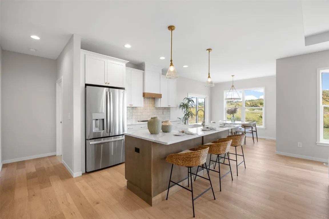 Move-in ready! Imagine spending an afternoon in Uptown Marion, or a long day of biking on the Lindale and Boyson Trails. As you head home on bike or foot, you pass through the privately connected trail to Archer Drive and head home to your cul-de-sac. This brand new ranch plan has something for everyone. Our most requested split-bedroom layout with main level laundry, large open great room and private backyard views. Instead of the standard third stall garage, we added 10′ of extra storage for every lifestyle. This could be the hang-out spot on a Summer evening, a perfect bike rack space for your busy family, or the place to add your hobbyist work bench. The main level features tall ceilings, built-in electric fireplace, quartz counters throughout the kitchen and baths, and more! Skogman Homes offers a 10-year limited warranty and would consider a trade on this home.