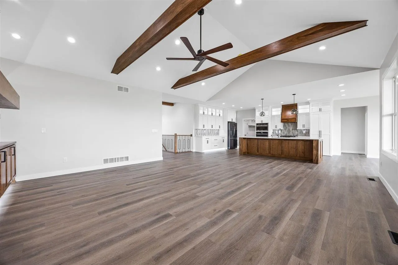 Water Front New Construction Property in the beautiful Park Place Development! This is one of THE BEST lots in Tiffin! This highly desirable Zero Entry Walk Out Ranch overlooking a gorgeous pond in town is absolutely amazing! Smart Home package, Safe Home package, Solar prepped, seal/coated garage floors, designer garage doors, gas garage heater, huge drop zone room with TTB built-ins, W&D, util sink, giant island kitchen, stainless appliances/double ovens, work station sink, tons of cabinets, secret butlers pantry with cabs & prep sink, 2 large floor to ceiling stone fireplaces, vaulted ceilings in living room/wood beams, built-ins, LL wet bar with refrigerator/ water line, 12′ island style bar in LL, sound deadened theater room/ home gym/craft room.Tons of extra cabinet space in all rooms, water softener, RO drinking water, tankless WH, gas line run to the upper outdoor maintenance free deck, LL screened-in porch off oversized patio, stairs connect the top to bottom exterior spaces, all closets light up LED, twice as many recessed LED ceiling lights than other homes, all qua rtz tops, white paint-in-place trim package, LVP flooring, many pocket doors, 2 huge living rooms, primary suite with large 84″ vanity, large shower/tile/ bench/3 way/glass wall, custom primary closet, tons of windows and tall doors in 9′ ceilings LL. Wow!