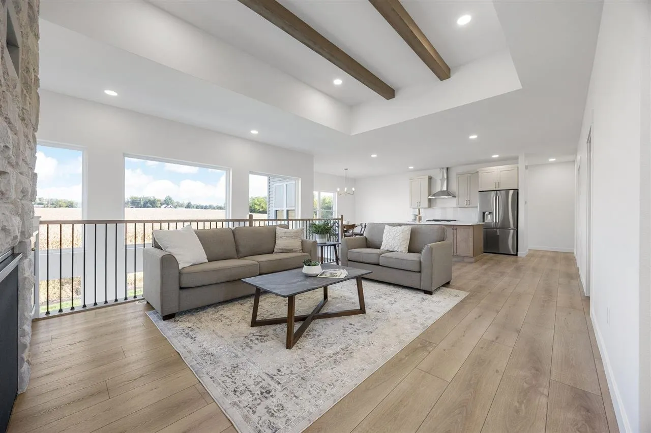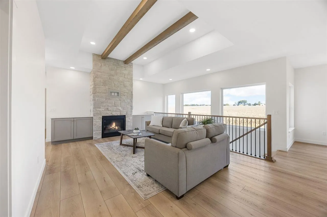 Welcome home to this spacious ranch in the highly desired Stonebrook development in beautiful Mt Vernon! Located within walking distance to Mt Vernon schools, sports complex, and community wellness center! Stunning exterior with stone accents. Spacious great room with trey ceiling, LVP floors, floor to ceiling stone fireplace, & built-ins. Main level laundry/mudroom with lockers. Gorgeous kitchen with off white cabinets, quartz countertops and backsplash, hood vent, gas stove, phone charging feature in the countertop, huge walk-in pantry, & daily dining area. Primary suite with walk-in closet, transom window, his & her vanities, groutless solid quartz primary shower, & a linen closet. Two spacious secondary bedrooms & another full bathroom with dual vanity completes the main level. Atrium staircase to the lower level, where you’ll find a large rec room with wet bar, game/bonus area, 4th & 5th bedrooms & a 3rd full bathroom. As a bonus, the lower level also features a cold storage area/storm shelter under the front stoop! Oversized concrete patio with views of a field! No neighbors behind you!