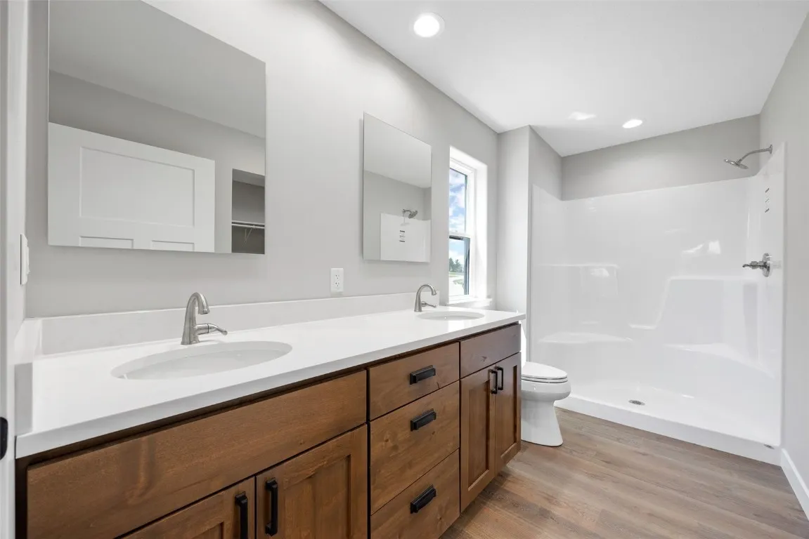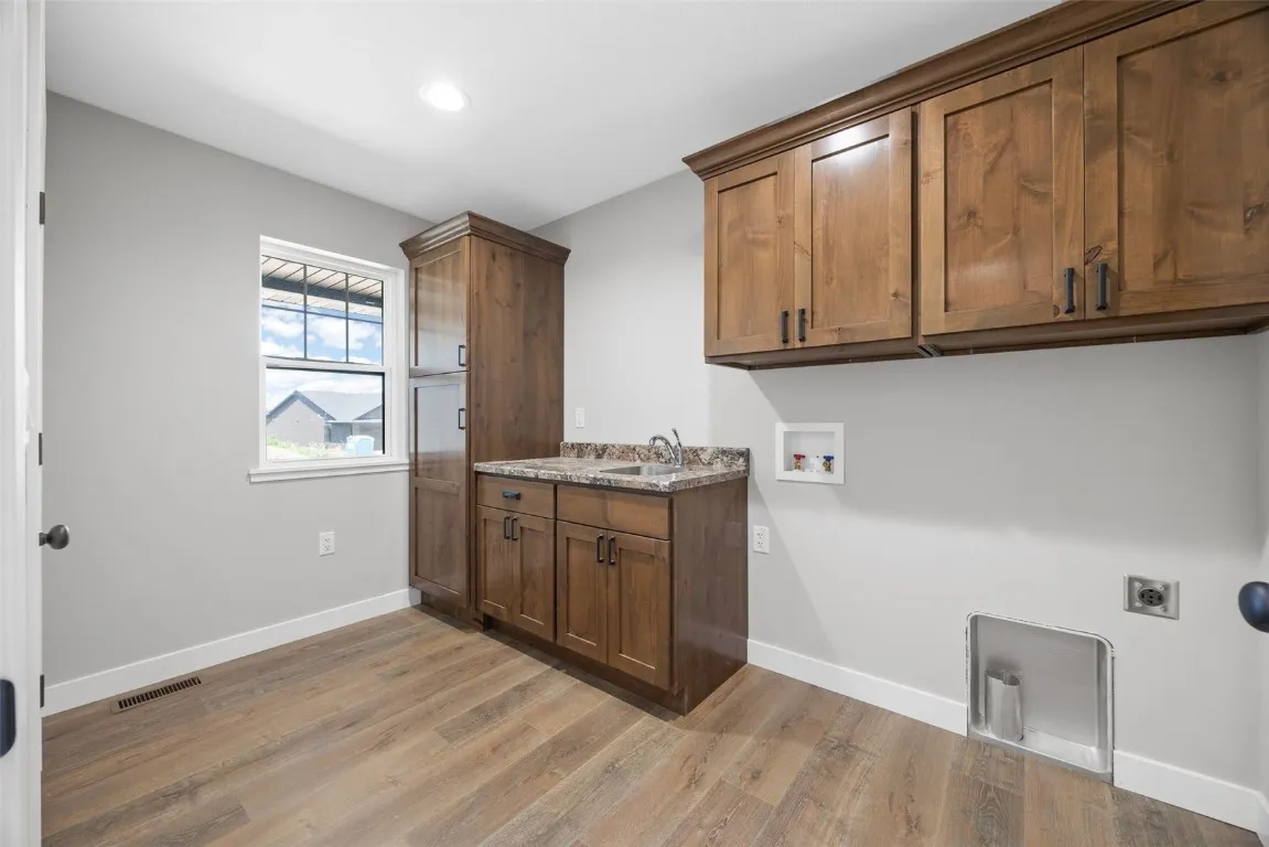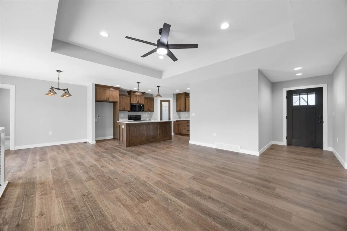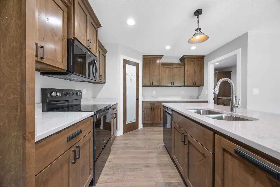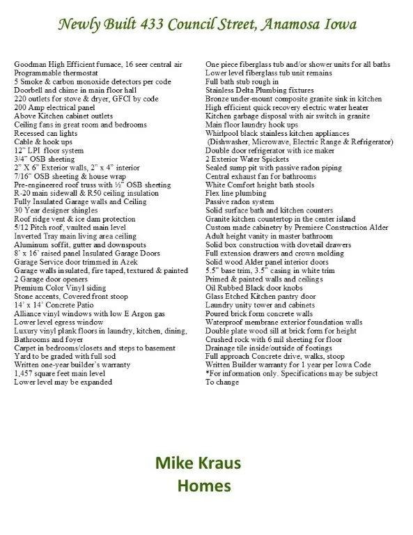 Newly constructed immediate possession custom built ranch by Mike Kraus Homes. Specialty features include Alder solid wood cabinetry and paneled doors, Premiere Construction full wood box structure, large base trim and moldings, black stainless appliances and etched glass pantry door. The main floor is open and flows well with the great room and kitchen at the center of the home. A split bedroom plan offers privacy and convenience. The primary bedroom, dual sink vanity, and walk in closet are spacious. The 24’ x 24’ car garage is insulated with 8′ x 16′ garage doors, a service door, with painted walls. Premiere building selections include custom color siding, shake vinyl cedar accents, and decorative stone. Entertaining is made easy with a 14′ x 14′ patio off the kitchen area, and an expandable lower level. Builder warranty, energy efficient constructed, passive radon system, floor plan and specifications available. Final grade and full sod included. Second water meter for exterior spigots or future irrigation in place for discounted water use.