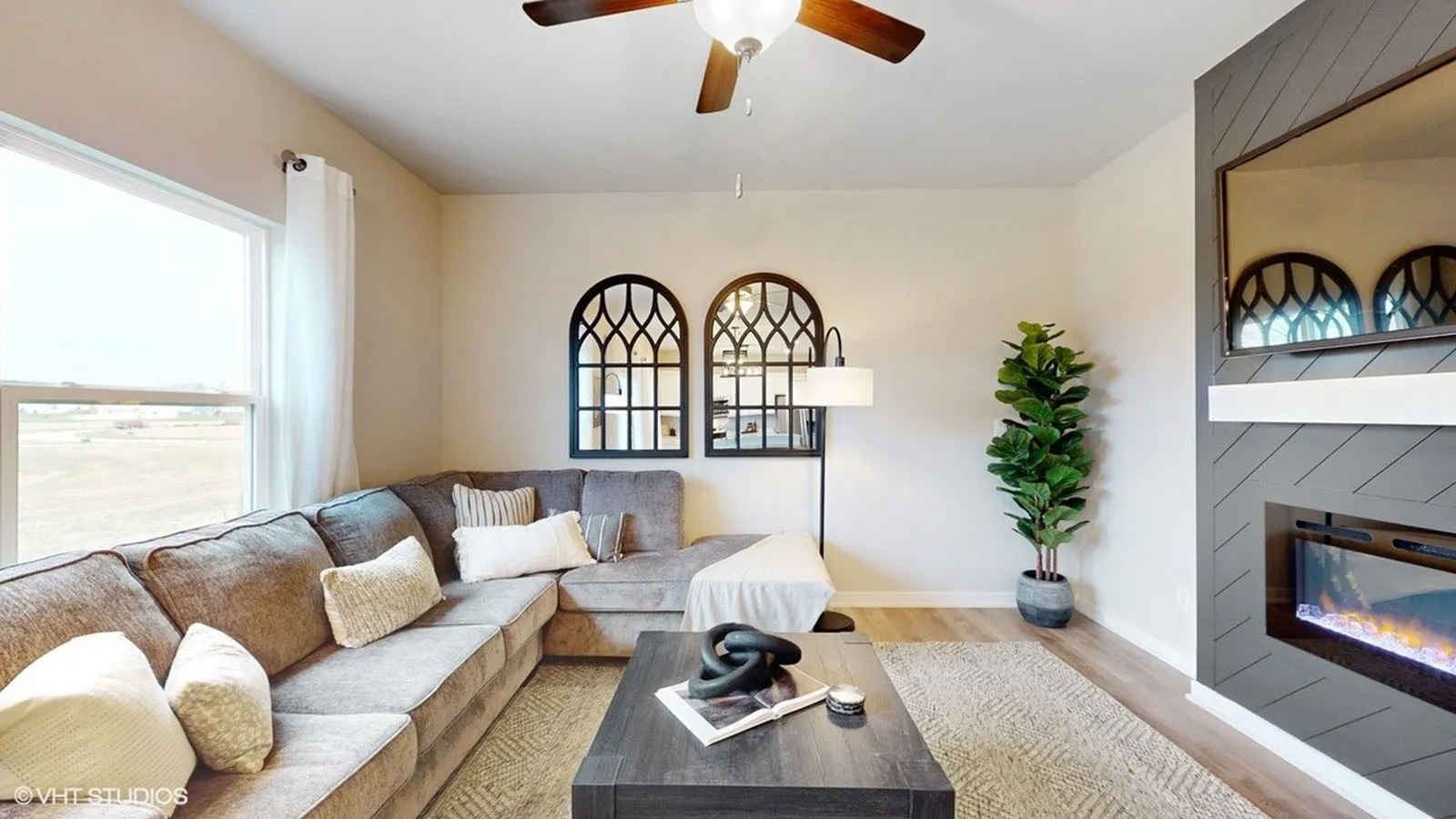 Welcome to the Bellhaven in Forevergreen Heights – a 5 bedroom, 3.5 bath home offering 2,556 sq. ft. of finished living space, including a spacious finished basement. Step inside to a versatile front flex room—ideal for a home office, playroom, or formal dining. A guest half bath and staircase lead to the open-concept living area, featuring 9-ft ceilings, an electric fireplace, large windows, and a bright, spacious feel. The kitchen showcases white cabinetry, subway tile backsplash, stainless steel appliances, a walk-in pantry, and a large island perfect for casual dining. Upstairs, a centrally located laundry room is surrounded by three secondary bedrooms, a full bath, and a linen closet. The expansive primary suite offers two walk-in closets, a double vanity, walk-in shower with ceramic tile, and private water closet. The finished daylight basement includes a rec room, fifth bedroom, and a full bath. Visit today for a personal tour! Ask about builder incentives with preferred lender. Photos similar to.