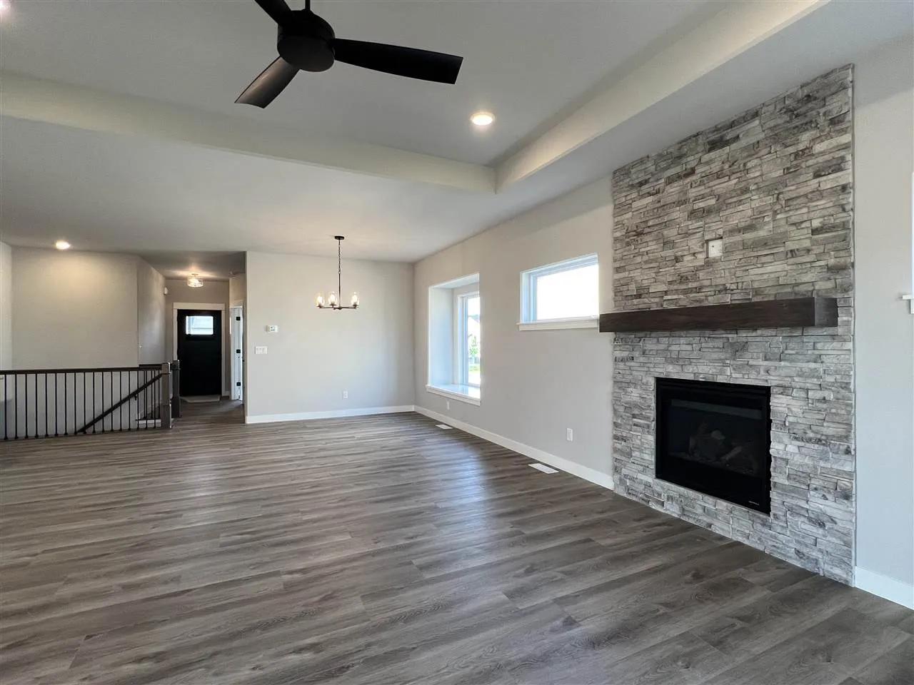 FINISHED PHOTOS OF A SIMILAR PROPERTY. DESIGN & FINISHES WILL VARY. Brand new zero lot with 2 bedrooms on the main floor and 2 bedrooms in the lower level. Great room features a trey ceiling and gas fireplace with stone. Covered deck with steps. White kitchen cabinets, breakfast bar, and stainless appliances with the microwave VENTED TO THE EXTERIOR. Hard surface countertops in the kitchen and bathrooms. White trim throughout. Primary bedroom has access to the laundry room through the walk-in closet. Primary bathroom has double sinks. Finished lower level has bedrooms 3 & 4, full bathroom, and family room. Right side.