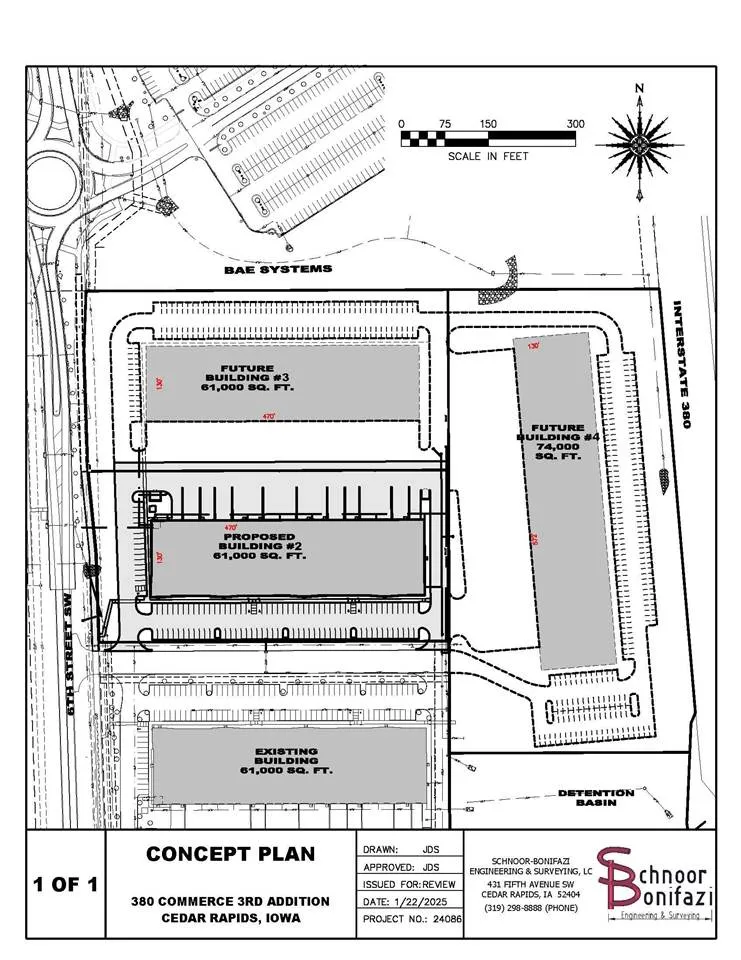 New construction warehouse/flex building at 380 Commerce Park with I-380 frontage. This site is highly visible along I-380 with excellent access to the interstate, Hwy 30, and to the airport. ESFR sprinkler system, 32′ clear height, LED lighting, 3-phase power, and warehouse heat. Docks and overhead doors. Warehouse lease rate is $9.25/SF NNN and $14.95/SF for office/showroom. Owner willing to amortize additional tenant required improvements over the term of the lease. 15,000 – 74,000 SF available. *Photo of a similar property.* One or more members of the ownership entity is a licensed Realtor in state of Iowa.