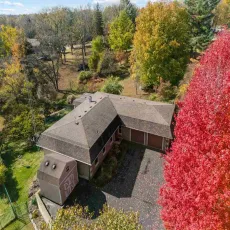Accepted subject to sale offer with 48 hour clause. Tucked away among mature trees and surrounded by nature, this spacious 4-bedroom, 3.5-bath ranch sits on over half an acre. The home features both a comfortable living room and a cozy den with a wood-burning fireplace. The updated kitchen offers ample space for a large dining table and connects conveniently to the main-floor laundry. The main level includes three bedrooms – one being a primary suite – along with a full bath and a half bath for guests. A south-facing four-seasons room fills the home with natural light and opens to a side deck, perfect for grilling or enjoying the peaceful backyard views. The walkout lower level adds even more living space with a large rec room, wet bar, fourth bedroom, and full bath. An oversized two-car garage and a large shed provide plenty of storage and easy access from the house.