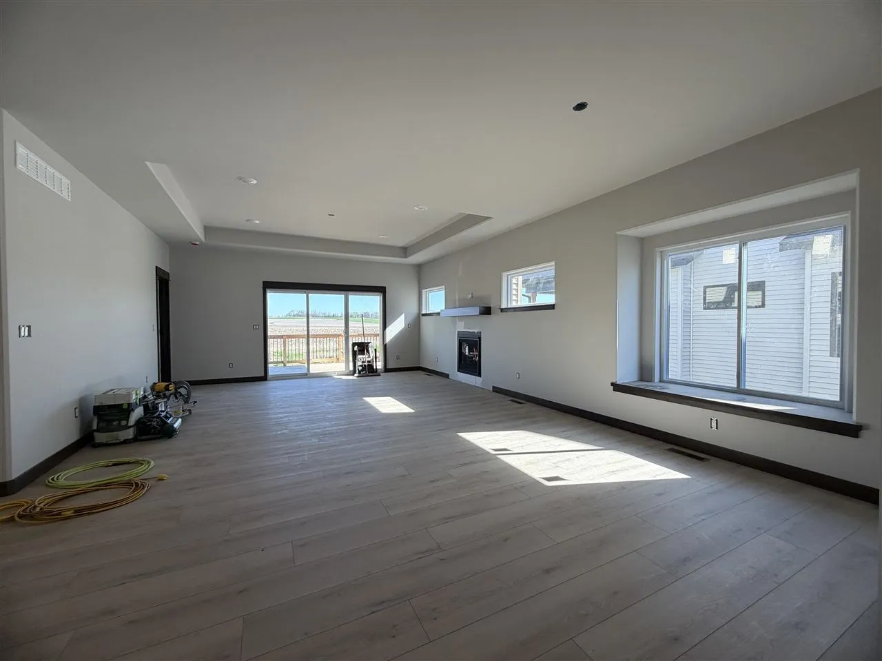 Brand new zero lot with 2 bedrooms on the main floor and 2 bedrooms in the lower level. Great room features a trey ceiling and gas fireplace with stone. Covered deck with steps. White kitchen cabinets, breakfast bar, and stainless appliances with the microwave VENTED TO THE EXTERIOR. Hard surface countertops in the kitchen and bathrooms. Dark trim throughout. Primary bedroom has access to the laundry room through the walk-in closet. Primary bathroom has double sinks. Finished lower level has bedrooms 3 & 4, full bathroom, and family room. Right side. Photos are of the actual property.